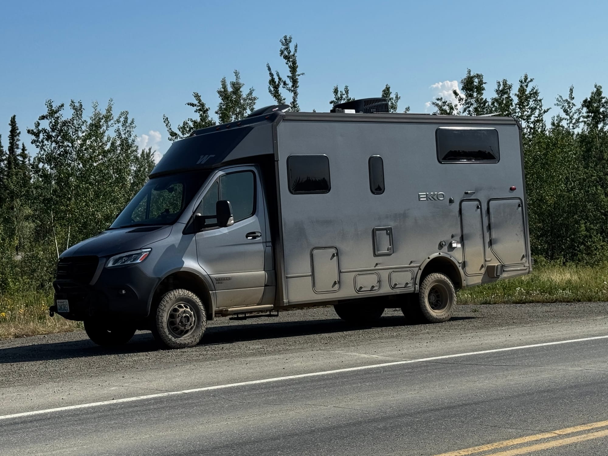 Truly, this region illustrates the old joke: "There are only 2 seasons: winter and road construction". Besides the dust and gravel and 'frost heaves', we had several sections where we waited 20 minutes for a pilot car to guide us past the construction. The road conditions got somewhat better once we crossed into Alaska; we are guessing this is due to greater spending to rebuild the road more often.