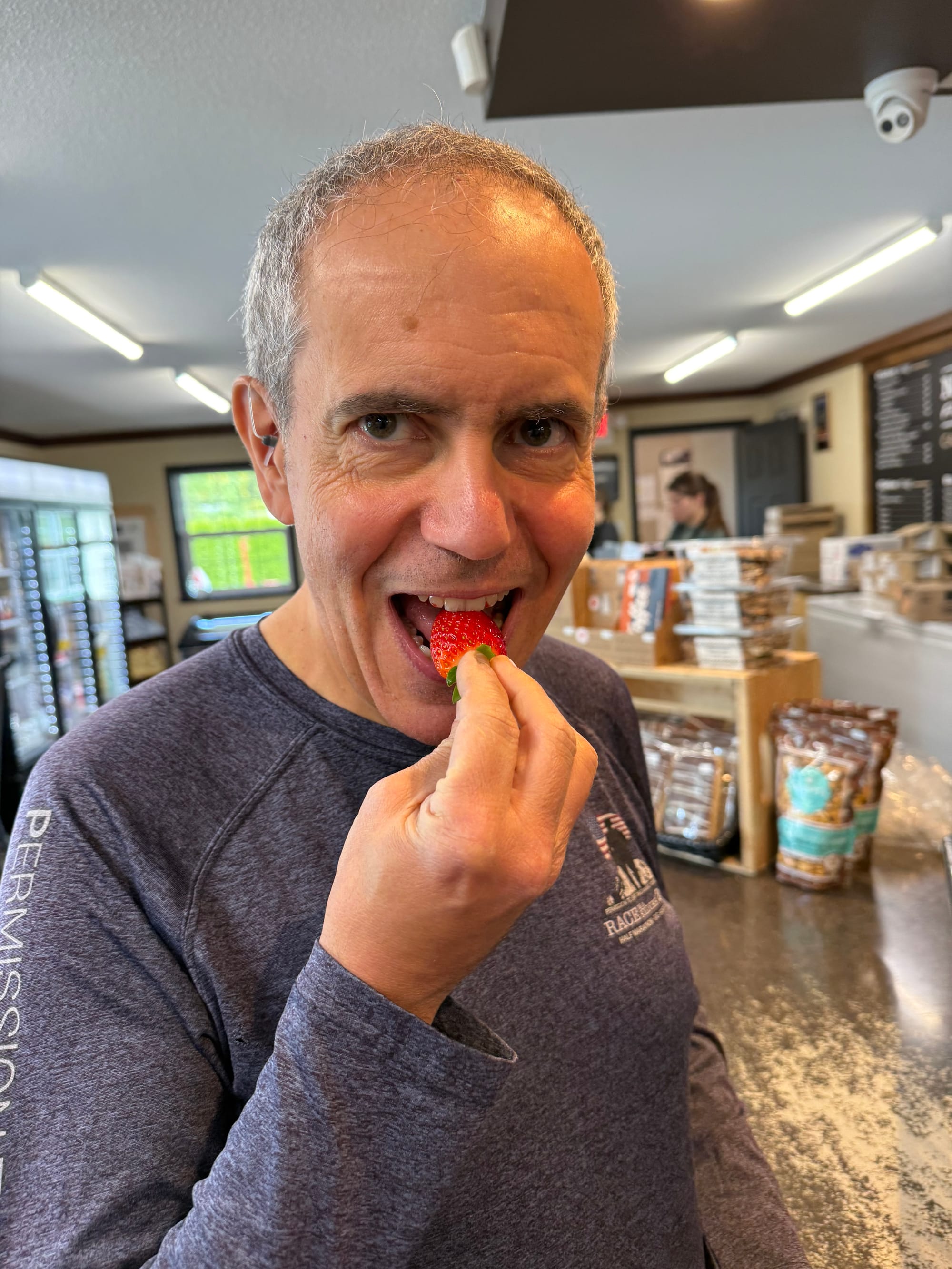 Our first stop was to a farm stand in Abbotsford. We needed to pick up some more fruit and we saw a sign. Abbotsford is the self-proclaimed raspberry capital of Canada. Unfortunately it was a bit early for raspberries so we had to settle for local strawberries. That was no sacrifice!
