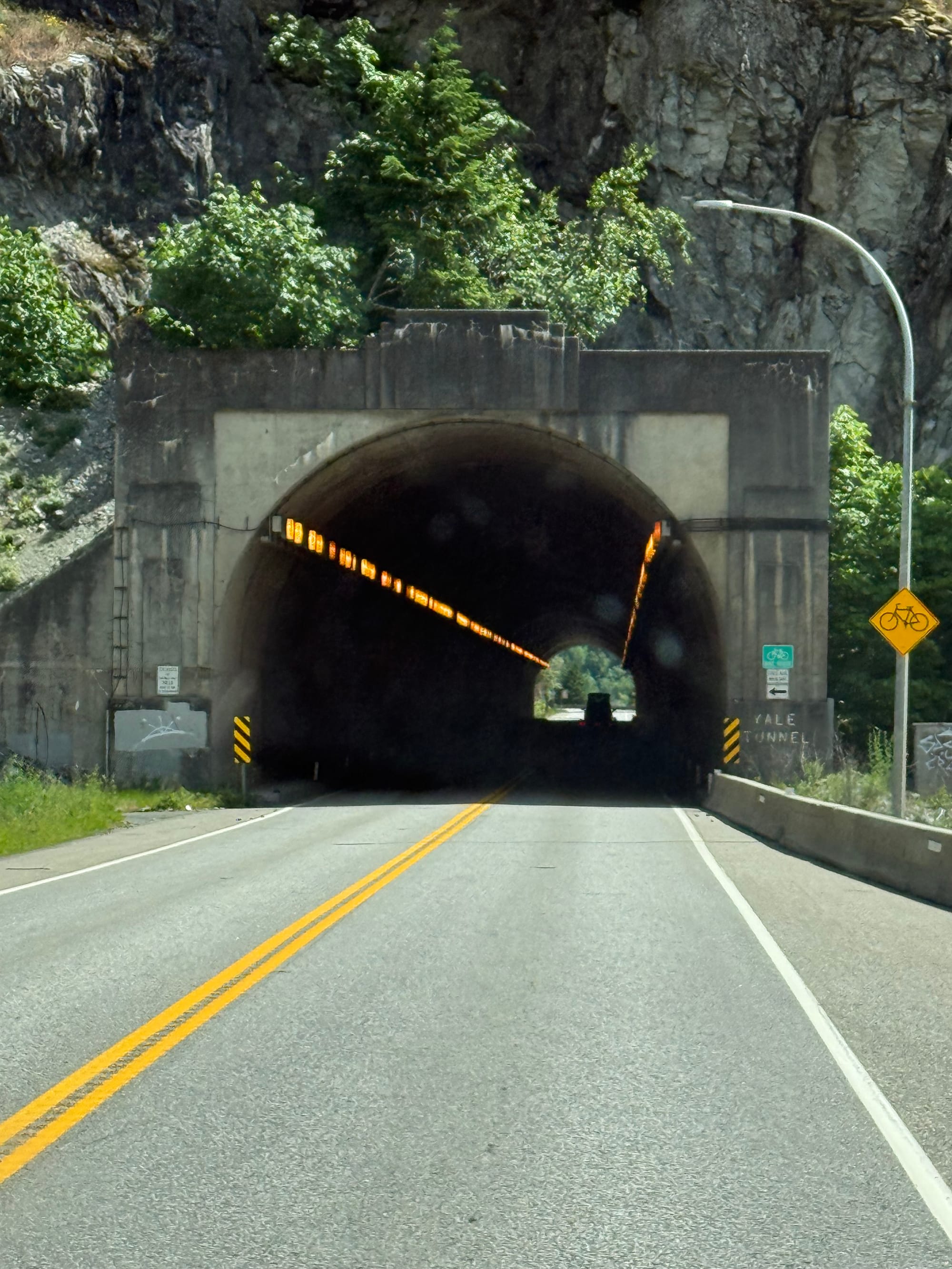 Following Hope, Canada Highway 1 winded through the northern part of the Cascade Mountain Range. The road follows the rail lines as well as the river. There were 7 tunnels including one of the longest in North America.