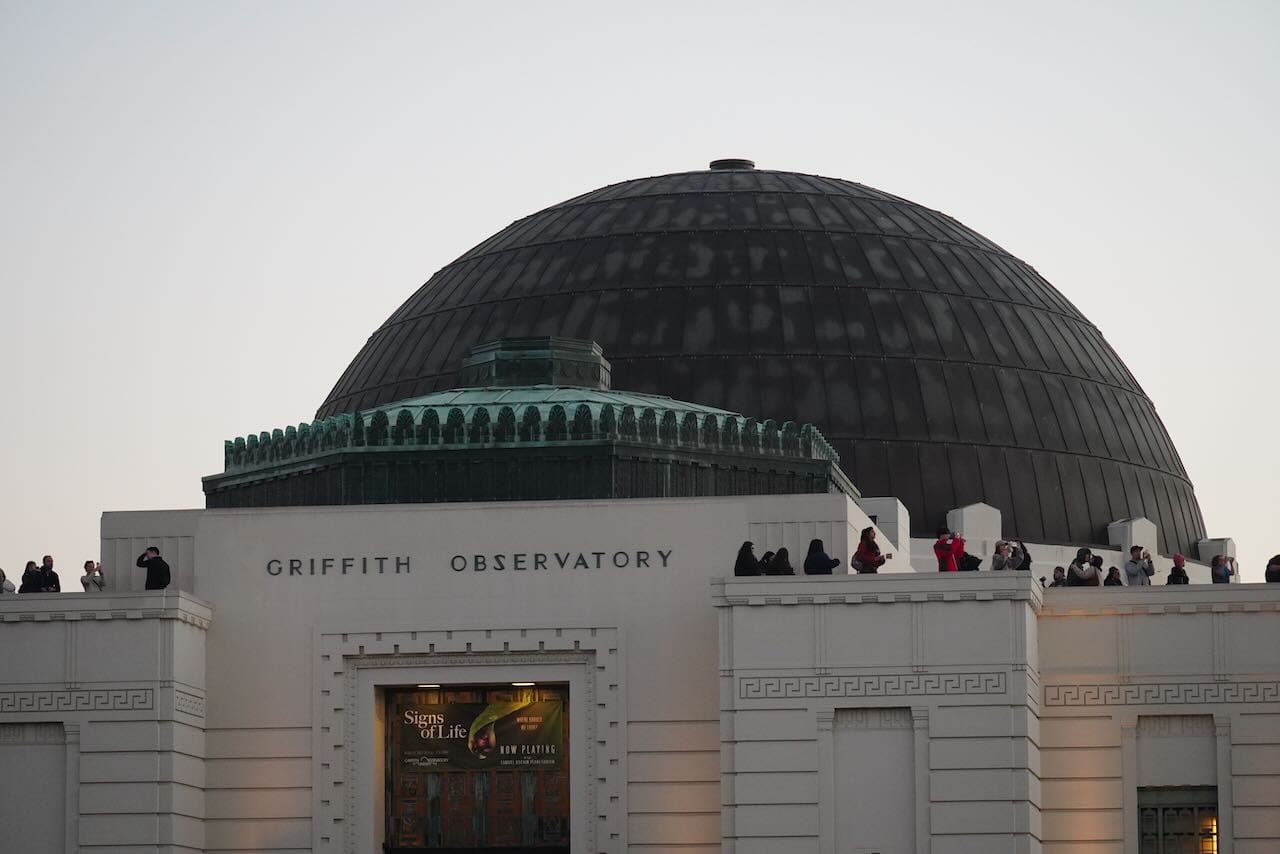 Finally, the fog began to lift, so we took another cross-town drive to Griffith Observatory. Many others had the same idea, and it was mobbed. We eventually found parking, walked to the summit just before sunset, and took a few pictures. We even saw the iconic Hollywood sign - mission accomplished!