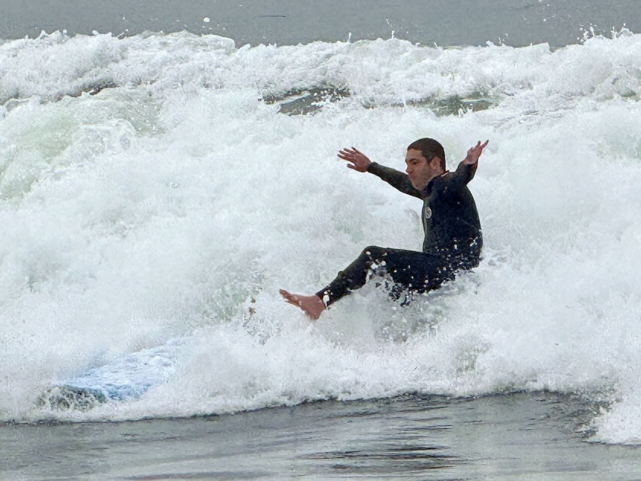 The day was supposed to start with a second surfing lesson for Ari. As the pictures show, the surf was too strong for a beginner! The instructor stopped the lesson after a few minutes and offered to reschedule or refund the lesson. Tomorrow is another chance.