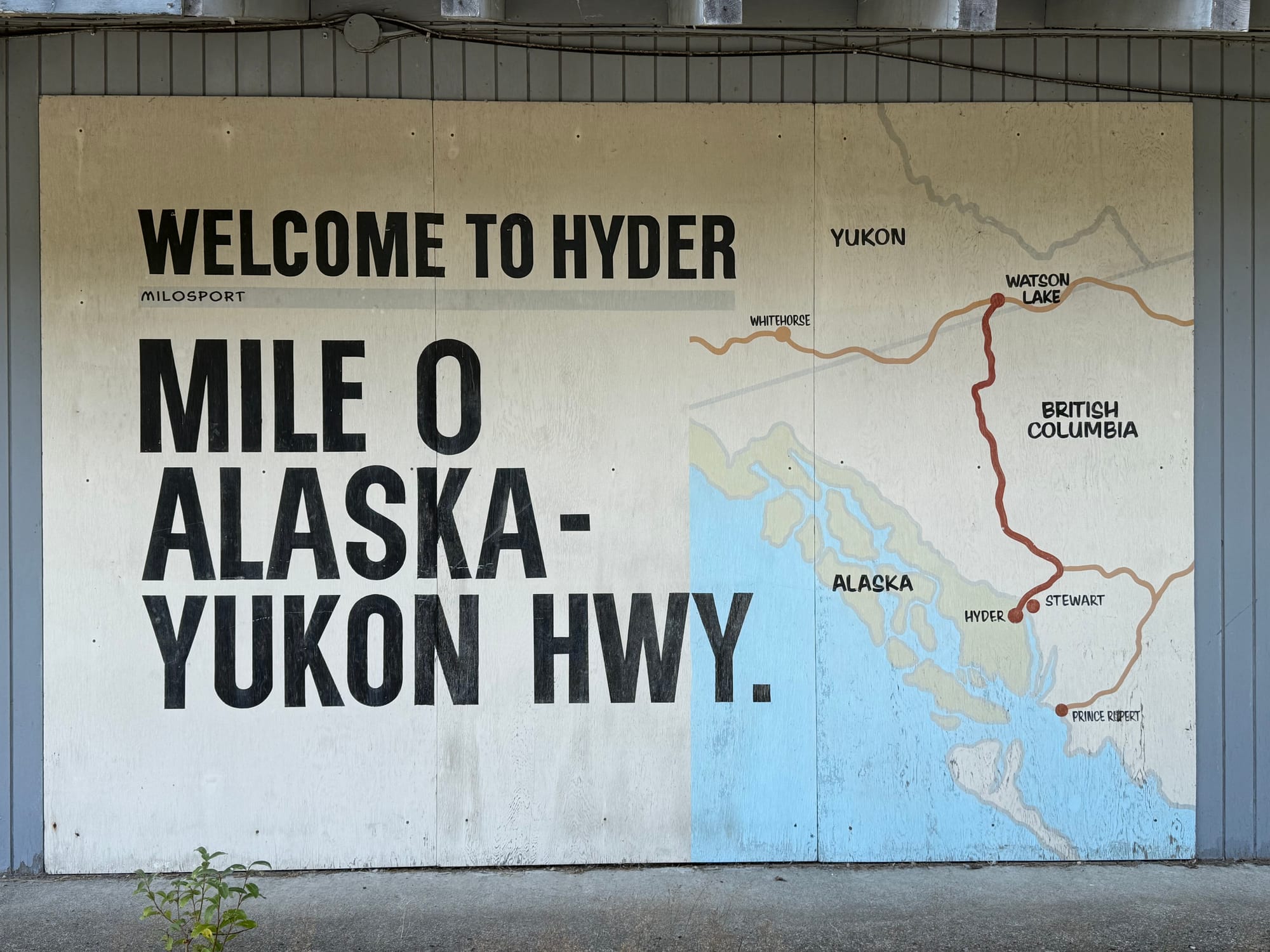 Another reason to take the Cassiar Highway is to visit the town of Hyder, Alaska. Yes, we're back in Alaska! If you haven't figured out by now, we enjoy visiting geographical curiosities. Hyder is the most southeastern town in Alaska, about a 45-minute drive from the Cassiar Highway. Hyder is so small that it has no US border control! (There is border control to return to Canada). The lack of border control is because Hyder is a dead-end: there is no practical way to get elsewhere in Alaska or the rest of the USA from Hyder. The main attraction in Hyder is the Fish Creek Viewing Platform, where you can see bears feasting on salmon during spawning season. Or at least they say that you can see bears; we saw nothing but spawning and rotting fish in fish creek. Not to mention the smell of rotting fish. We will spend the night in Hyder so that we can return to the viewing platform in the evening and morning, which should be better times to see bears. Fortunately, our campsite is far from the smell of rotting fish. And hopefully far from bears.