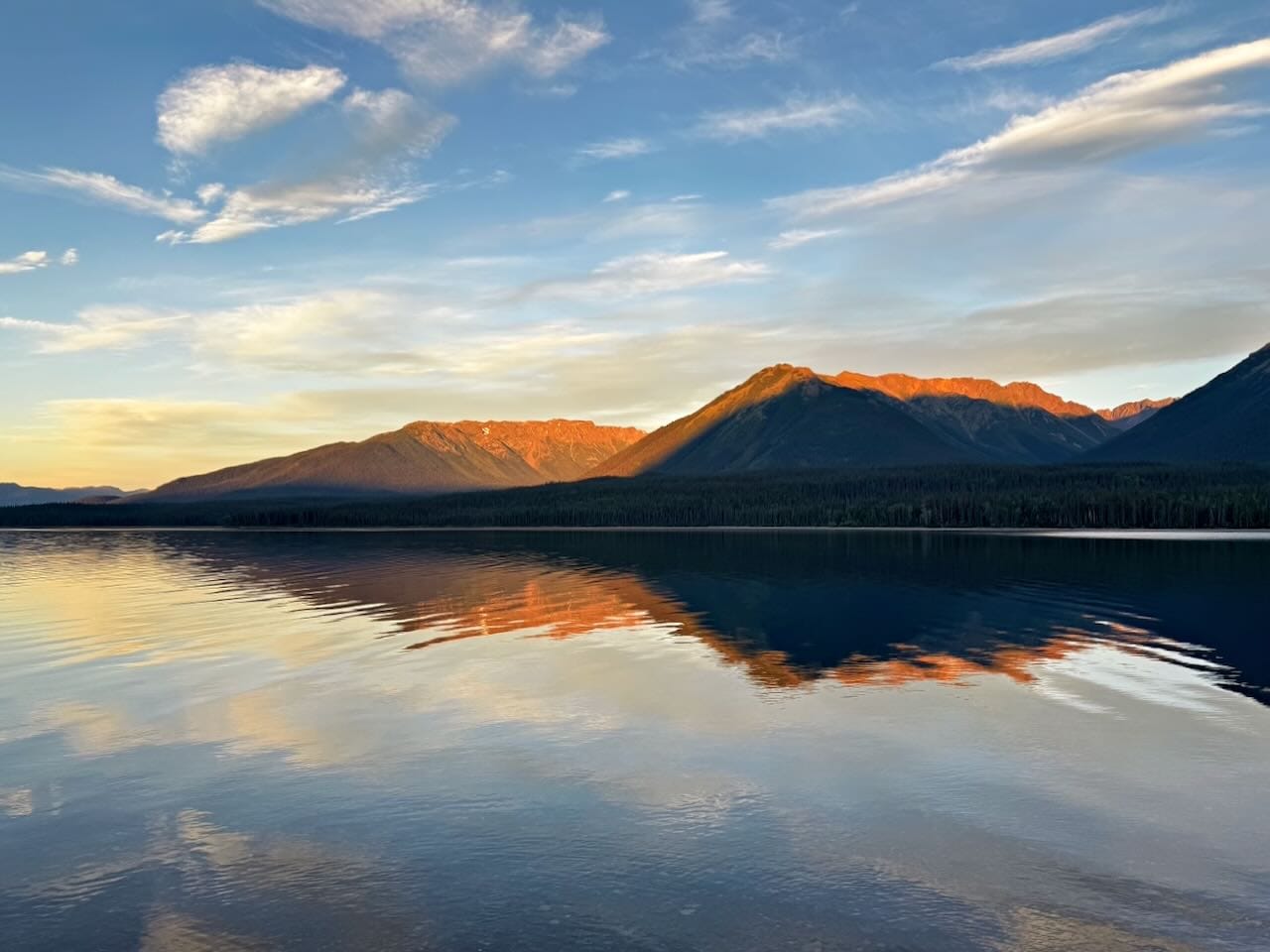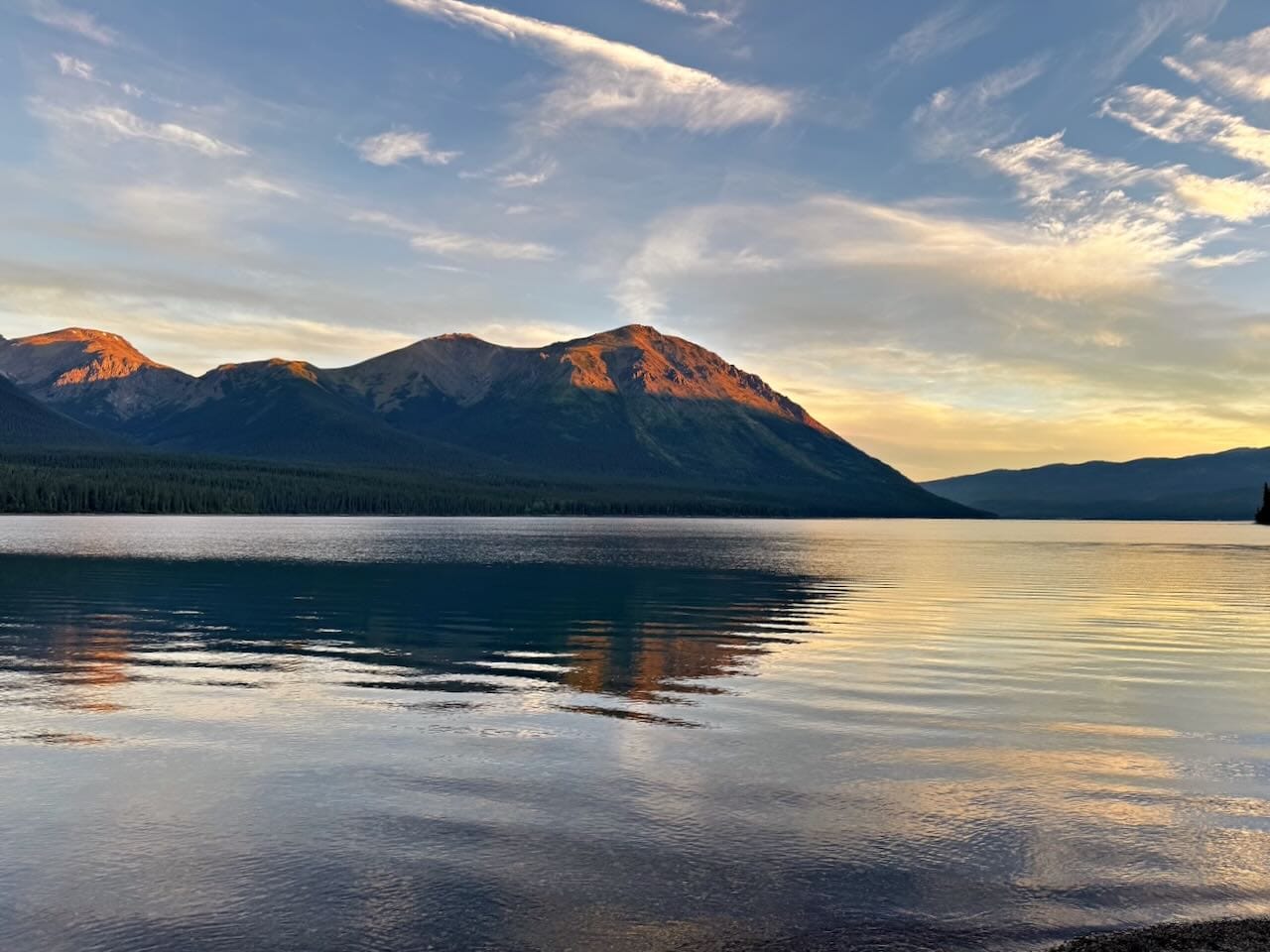 Along the Cassiar Highway, we spent the night boondocking on the shore of Eddontenajon Lake. After a quick dinner, we took the kayaks out on the lake, which was a beautiful way to end the day. Greg noted that we started the day in the water (at the hot springs) and ended it on the water (in the kayaks). On Saturday morning, the sunrise was gorgeous across the lake. Who needs waterfront property when you have an RV?