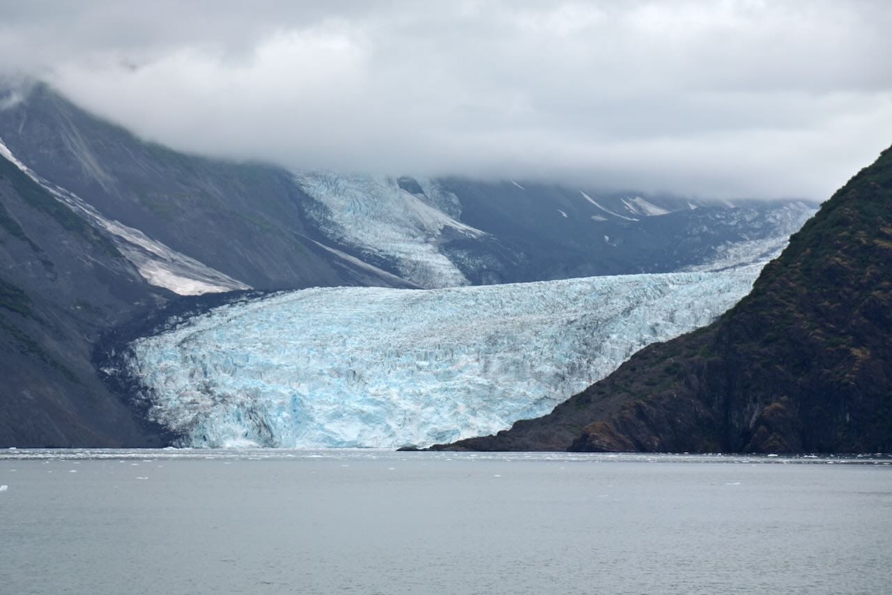 Then we headed into College Fjord, so named because the glaciers along the fjord were named after prestigious universities. The highlight of the college fjord glaciers was the Harvard Glacier. Amy kept calling it the Harvard of glaciers. Greg was disappointed that the Yale Glacier was barely visible due to the clouds. And sorry Adam, there is no Princeton Glacier in Prince William Sound. According to the captain, the Harriman expedition which named the glaciers, had a vendetta against Princeton.