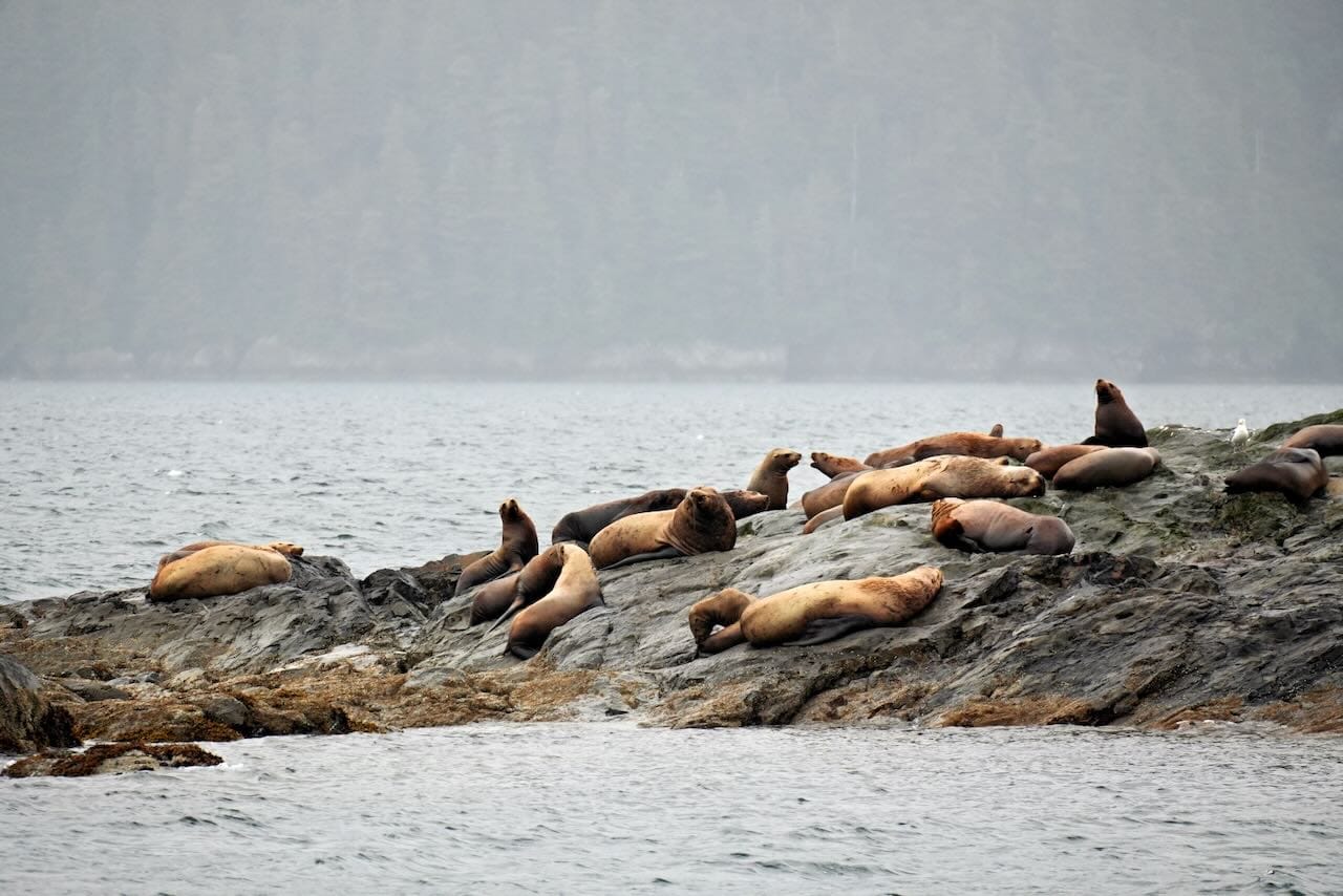 On the way back we passed through the Esther Passage, with forest on both sides. We saw a sea lion rookery. We have become a bit jaded because it was smaller than other rookeries that we have seen on this trip.