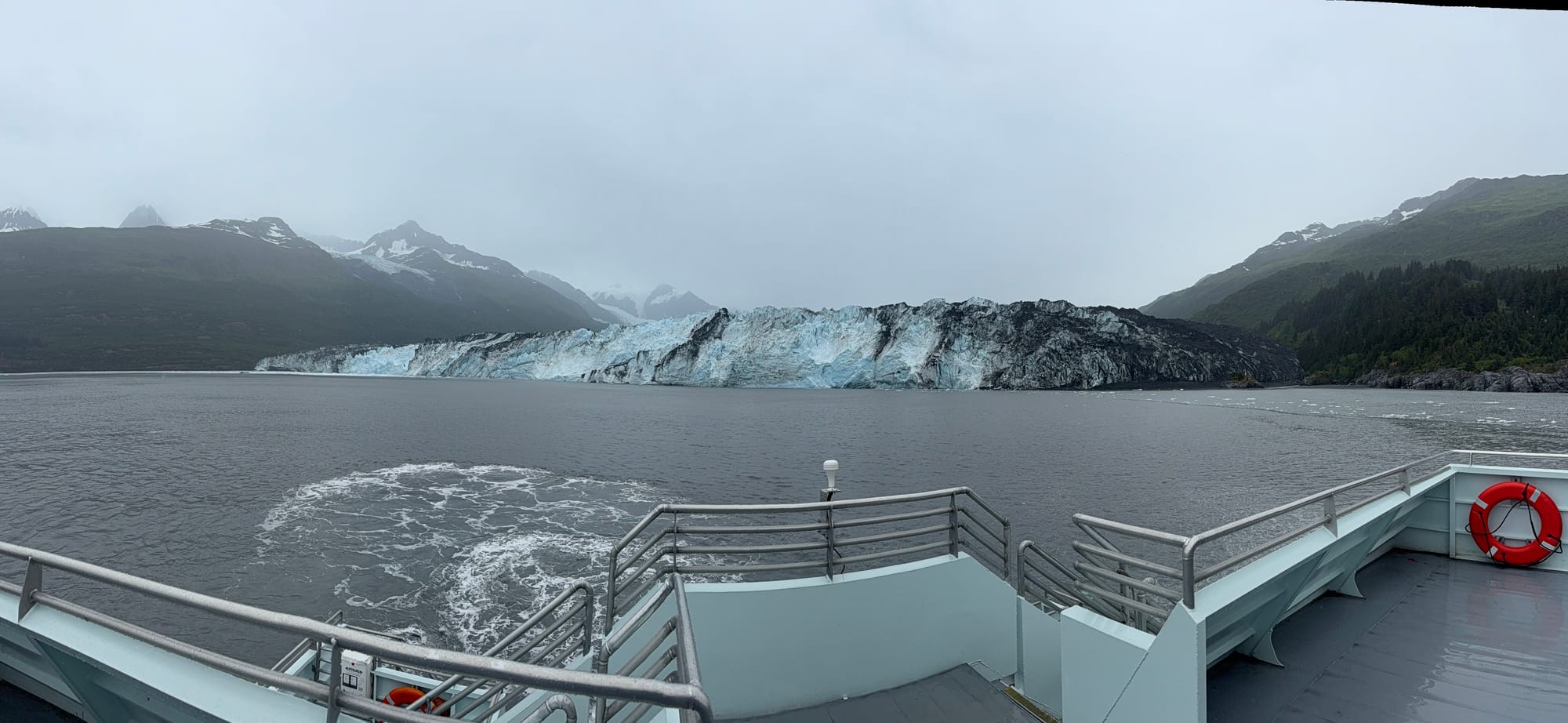 Today we took a boat excursion into Prince William Sound. The tour was called the 26 Glacier cruise. There were 26 glaciers, but we didn’t see all of them either because of the cloud cover or because they were too high. Still, we saw a lot of glaciers. And we saw some wildlife along the way.