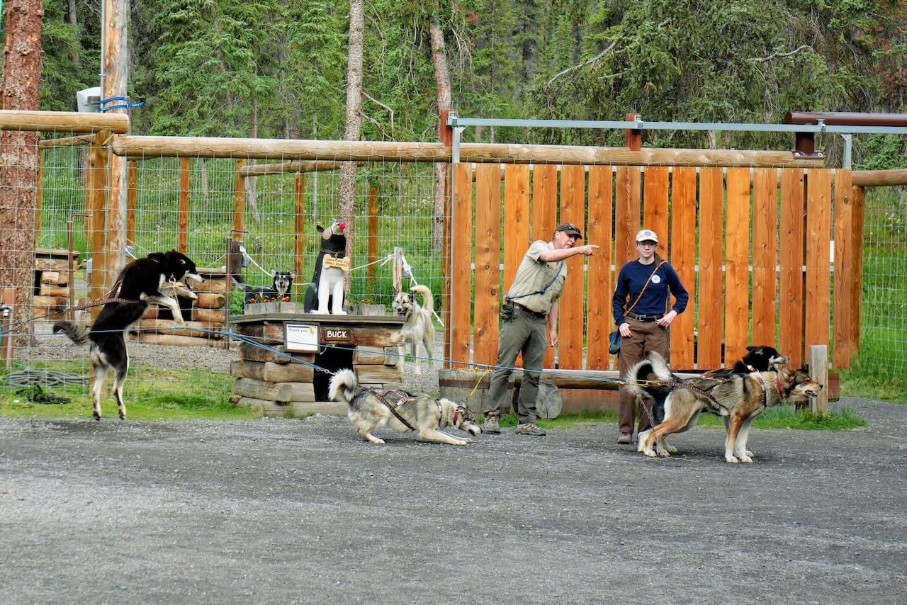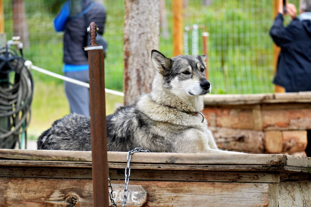 During the summer, tourists can visit the kennels. When they’re not working, most adult dogs are tied to a long rope, where they can decide whether to approach visitors or whether to sit alone and rest.