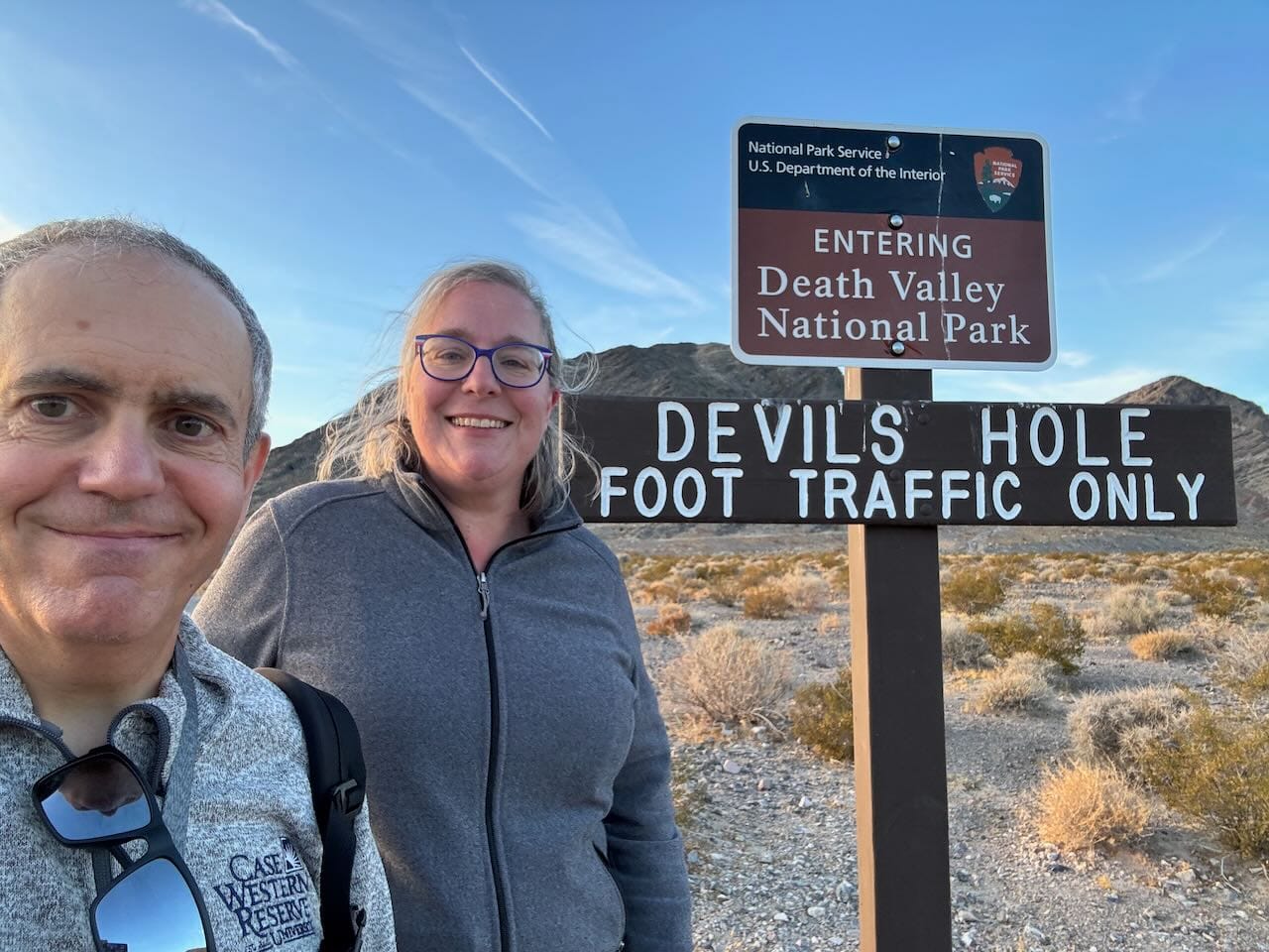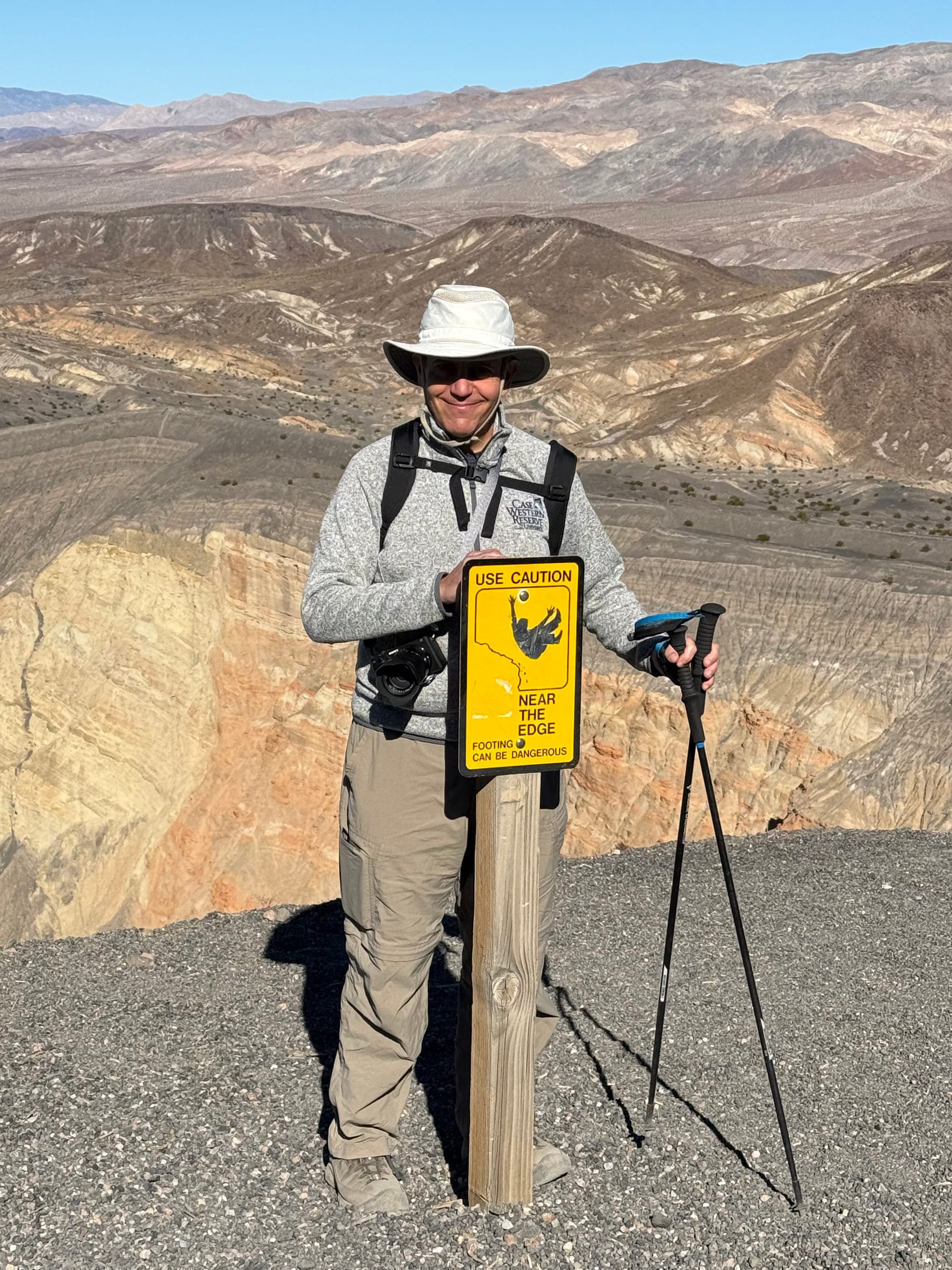 After several relaxing days, today was a day to overprogram “Greg-style”. Death Valley is the largest national park in the continental United States, and it is about an hour drive from Furnace Creek to Ubehebe Crater. The rim is made of gravel, and we hiked around the rim in a bit more than an hour.
