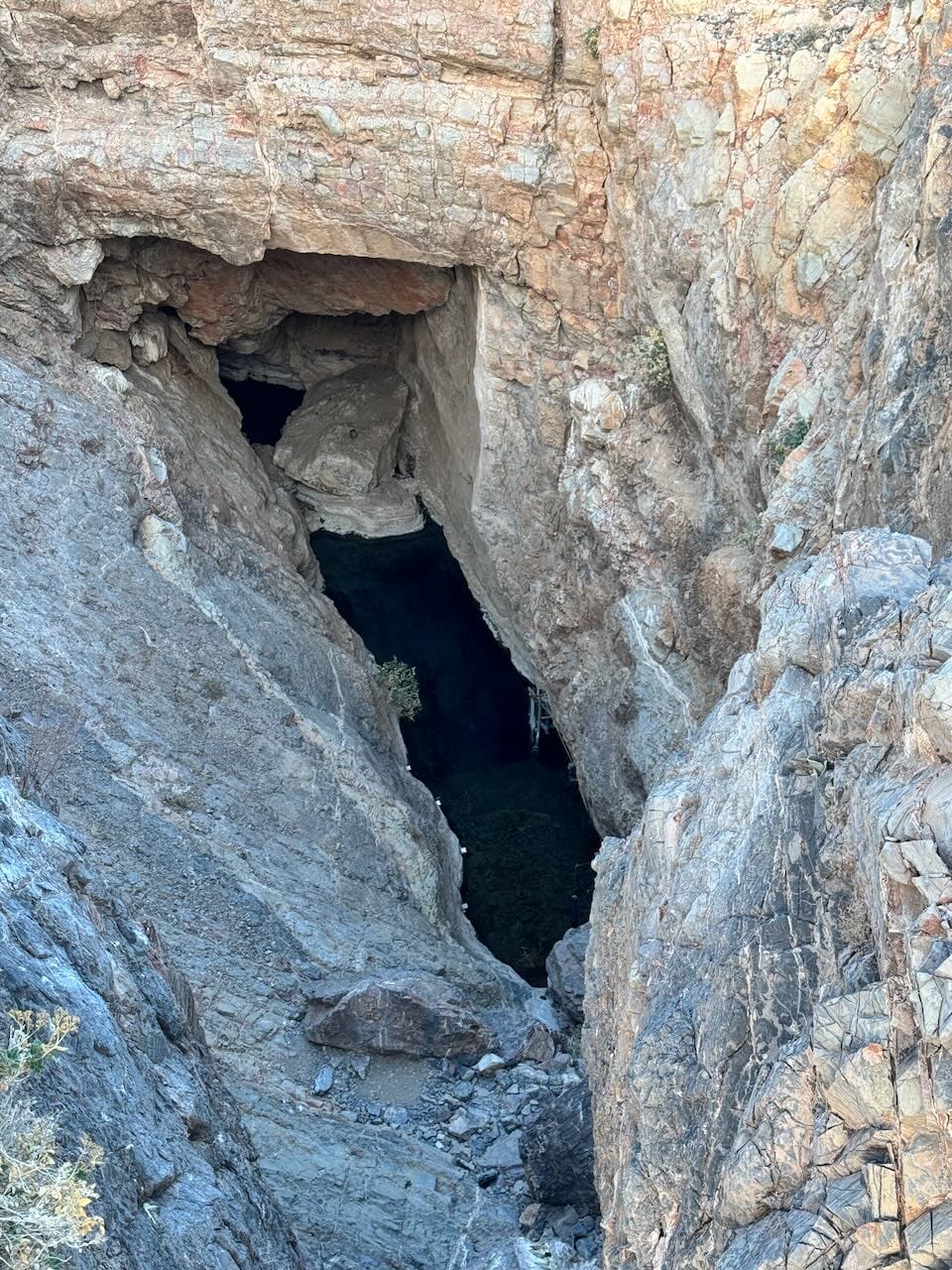 Finally, we reached Devil's Hole, a desert oasis. Yes, a rare breed of fish - the pupfish - live in a deep pool in the middle of the desert. This hole is the only place that the pupfish live. It is carefully monitored by ecologists due to its unique habitat.