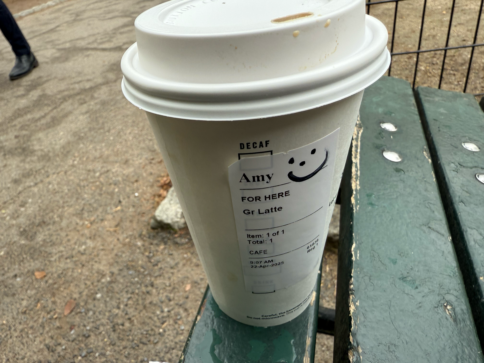 Amy got her morning coffee at Starbucks and the barista drew a smiley face on her cup. The barista must be a transplant; native New Yorkers aren’t friendly.