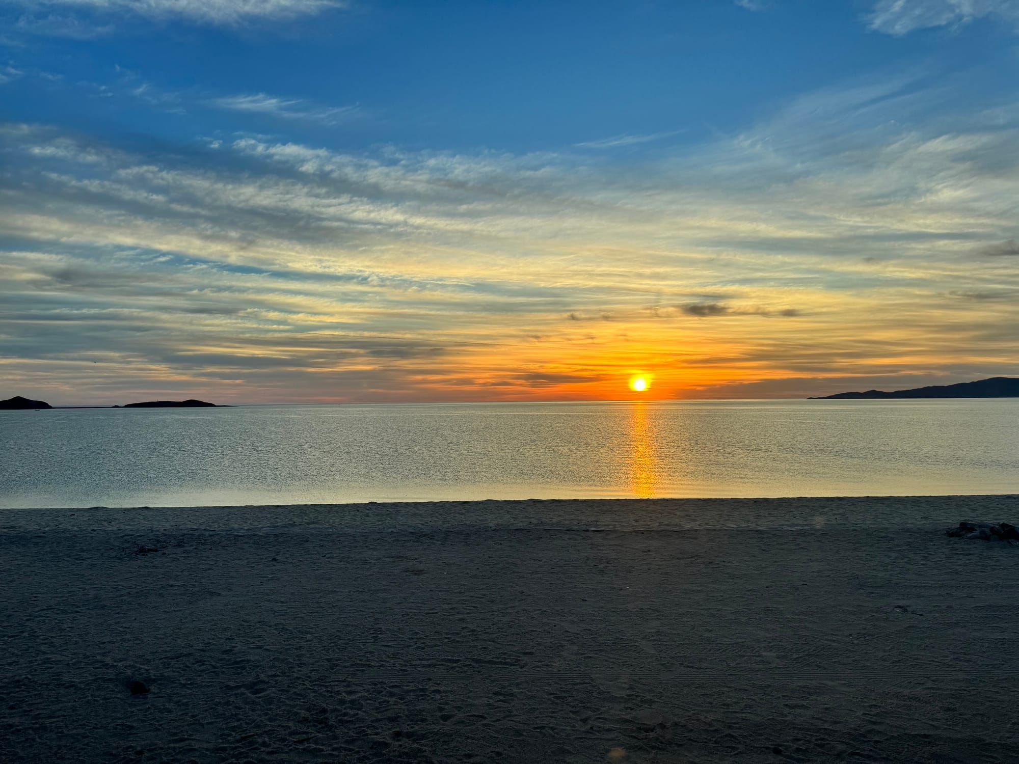 We spent the last 2 days in Bahia Gonzaga, a bay on the Sea of Cortez. It’s like a smaller version of Santispac with fewer tourists and no sales hawkers. In shocking news (#sarcasm), Greg had a very active day: a long run on the beach, an hour on Nancy’s kayak, some time on the computer, and 2 more hours on Nancy’s kayak. Amy also had some time on Nancy’s kayak and a siesta in the RV. Unlike Greg, Nancy had the sense to stay off the kayak in the heat of the afternoon. (In case you’re wondering, our existing kayaks don’t fit well in the new RV, so we’re picking up our new tandem kayak on Sunday in Portland).