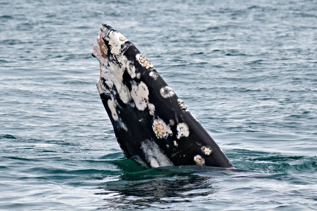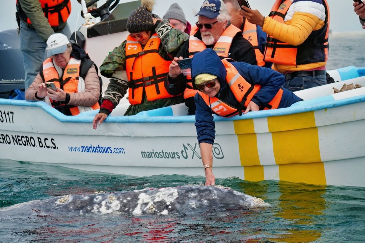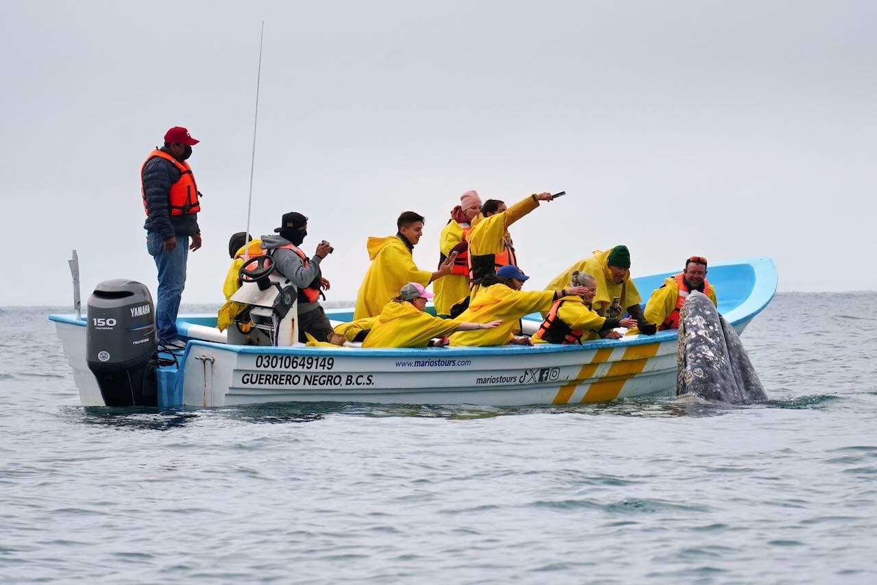 We've never seen so many whales before. Often, there were up to 5 or 6 within a few boat lengths. They would swim around and underneath our boats. Barnacles attach to gray whales but don't seem to affect them, apart from bleaching their skin white.