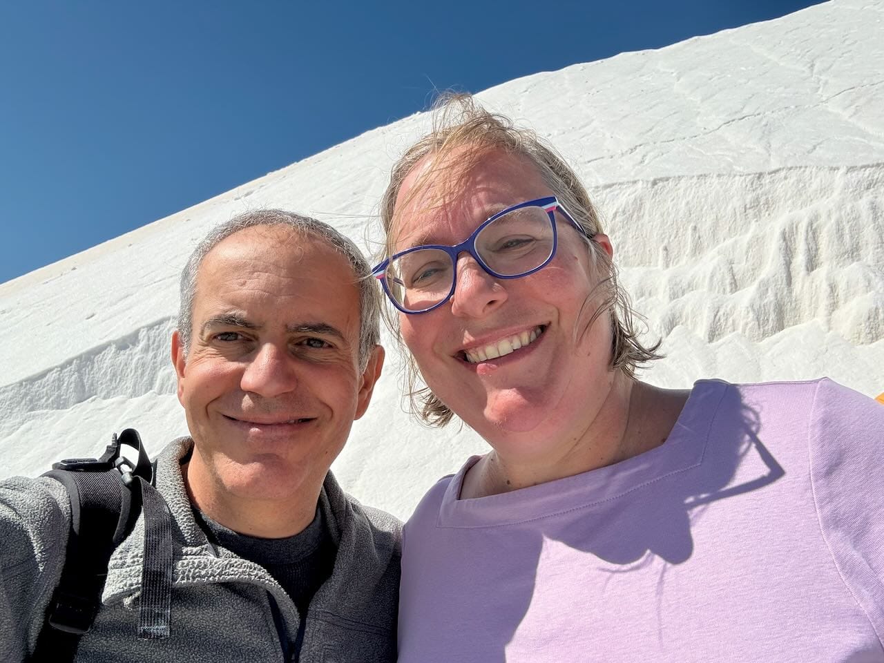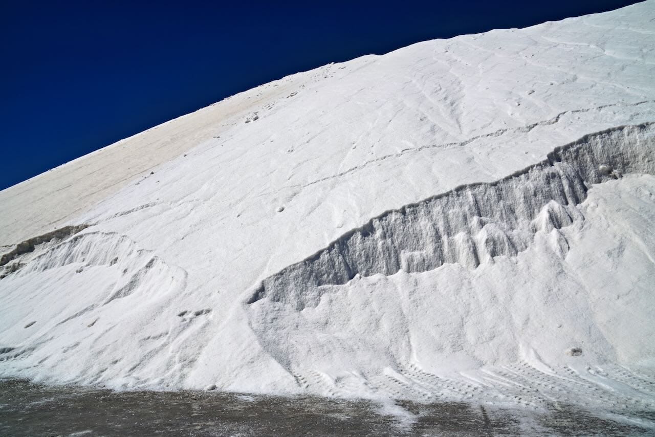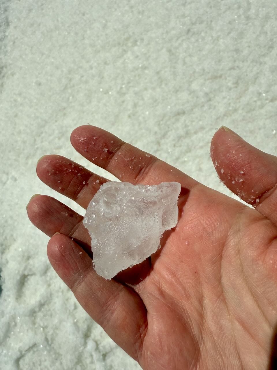 As we drove back, we stopped at a mountain of salt, which was as blindingly white in the sunlight as winter snow. We weren't allowed to climb it, partly for fear of avalanches.