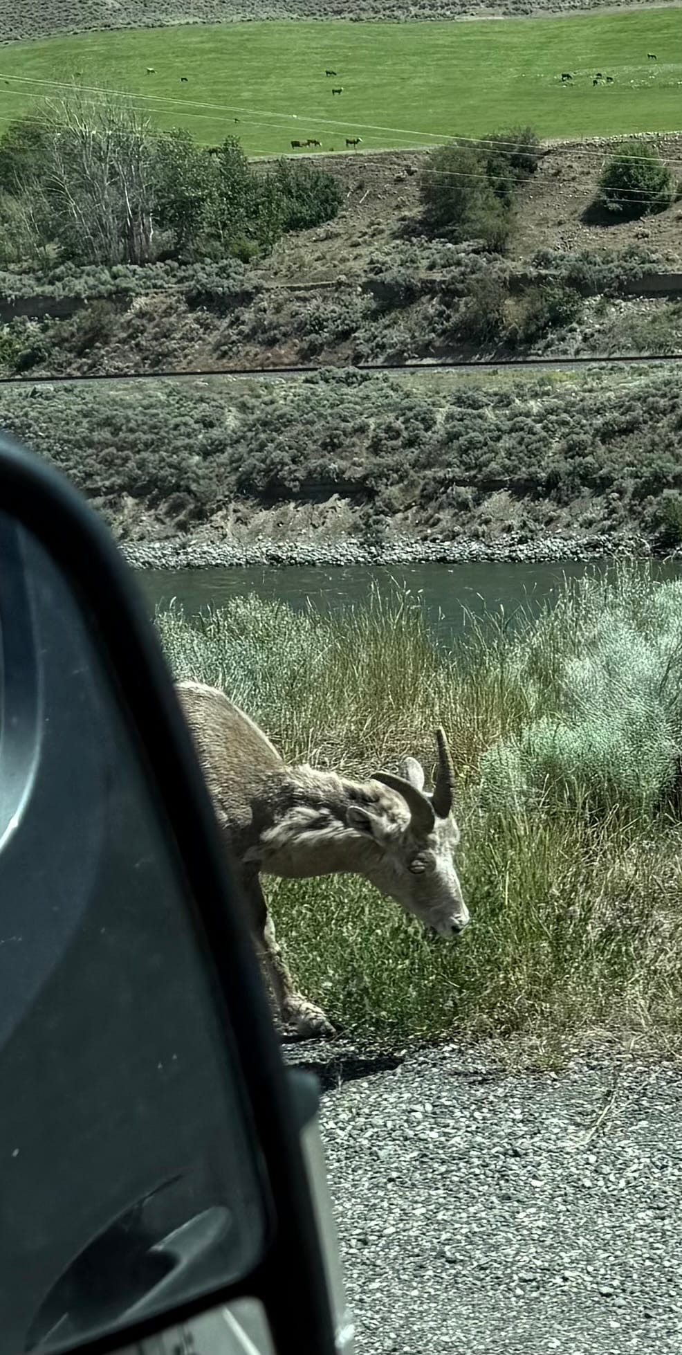 We did have our first wildlife sighting on the drive. A big horn sheep. It came on too quickly to get a better photo.