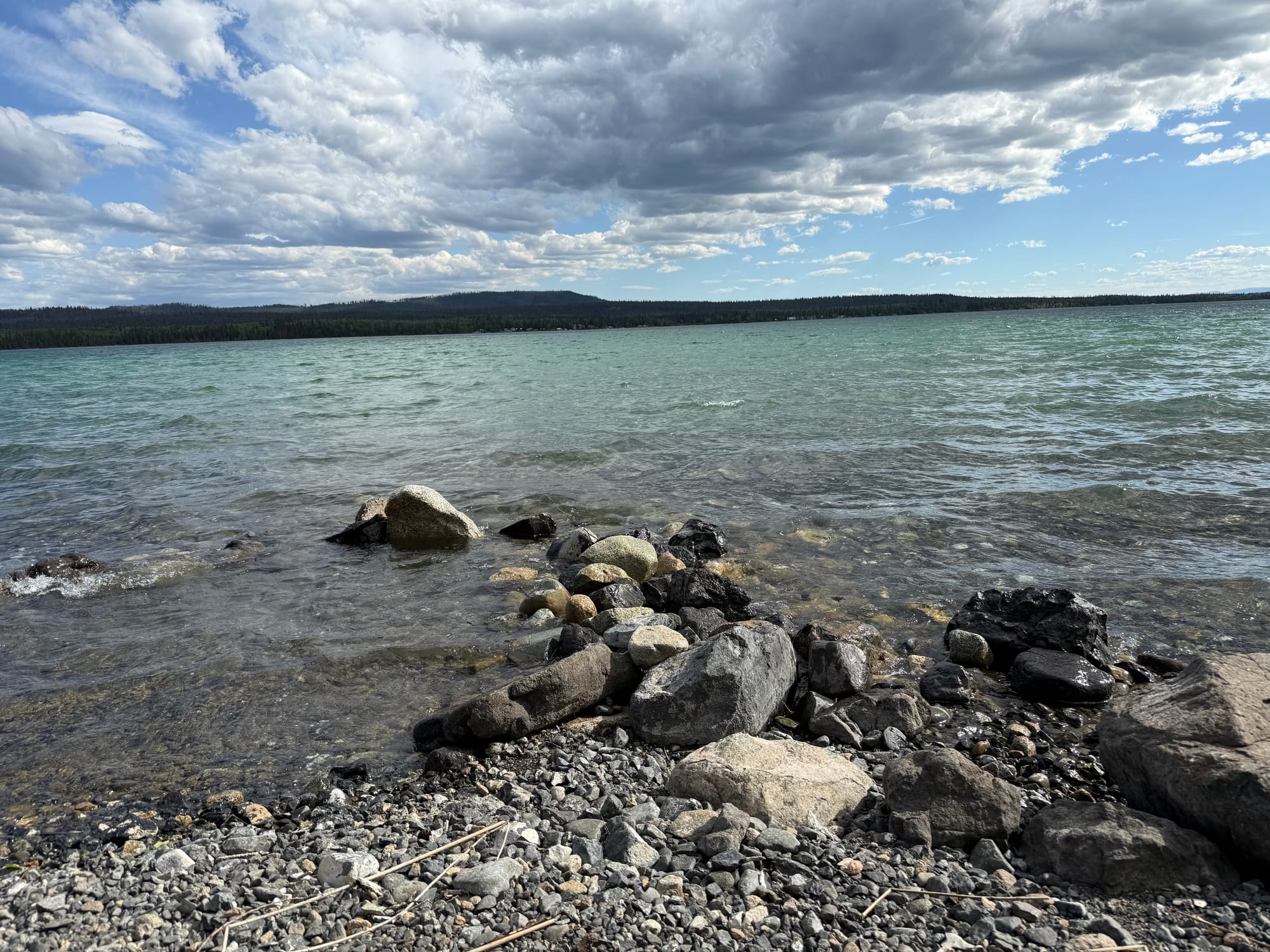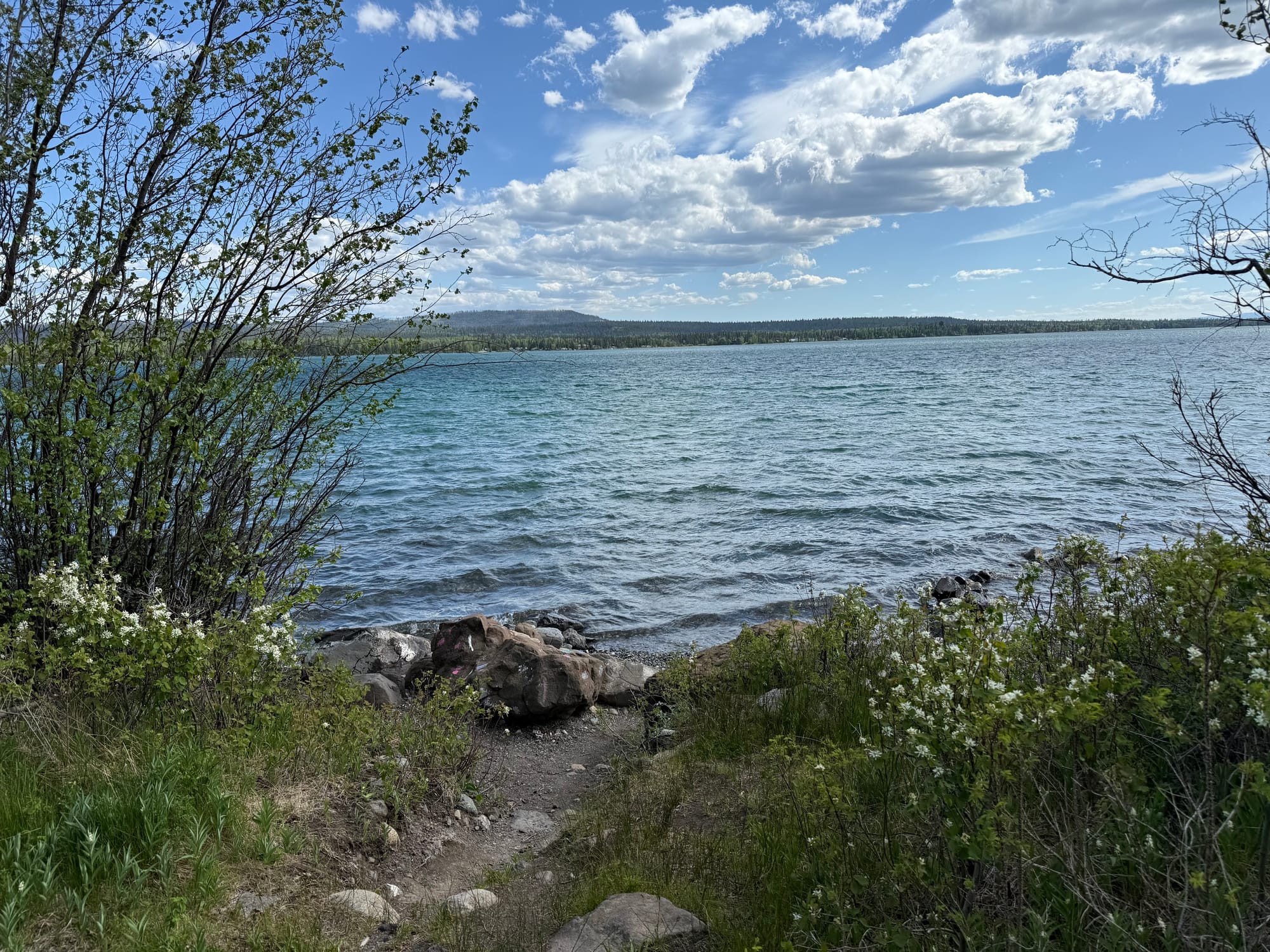 Our plan is to try to drive four hours or less each day. This would have brought us back to Hat Creek outside of Cache Creek again. Only it was 90F (32C) at 2 PM. We already saw the sights of Hat Creek. This would have required a hook up to get the air conditioning running with little to do. At the cost of an extra hour, we found a lovely provincial park at Green Lake. We found the Emerald Bay campground along the lake that had a campsite open on the lake. This was a huge win for us.