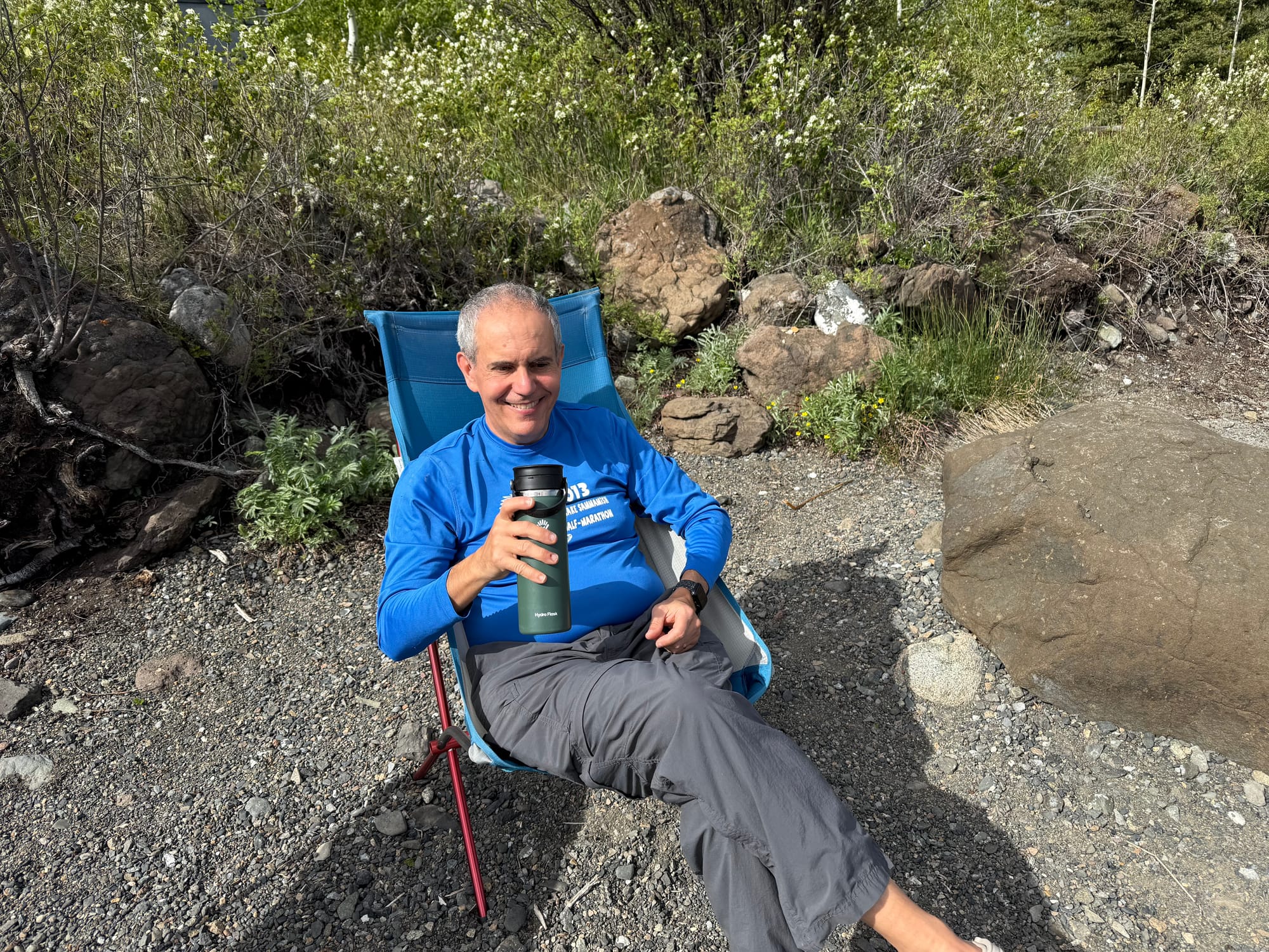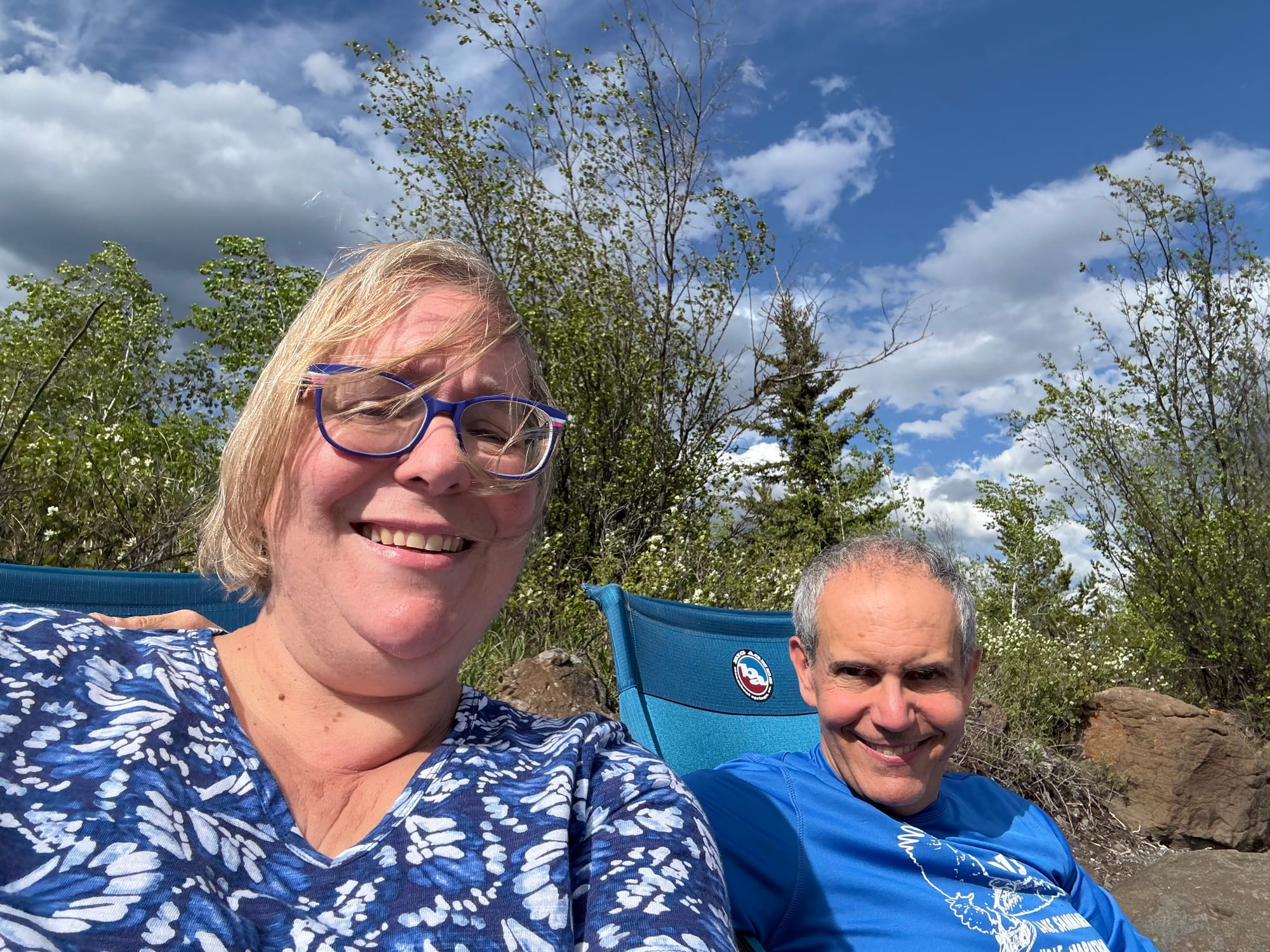 It is way too windy for us to take out our kayaks. So we are spending the rest of the afternoon sitting on our private waterfront along the lake. Yes, even Greg sat still for the afternoon.