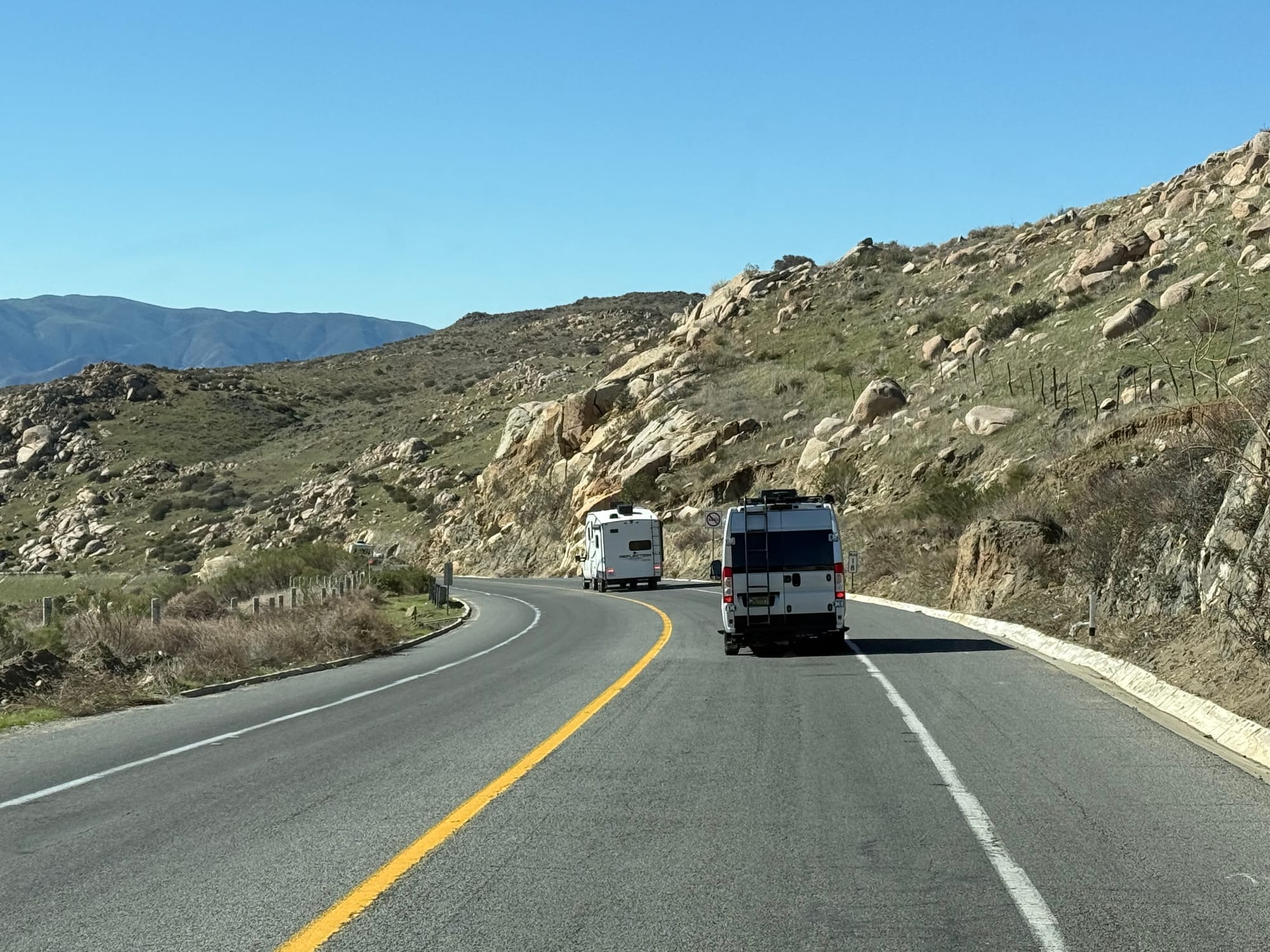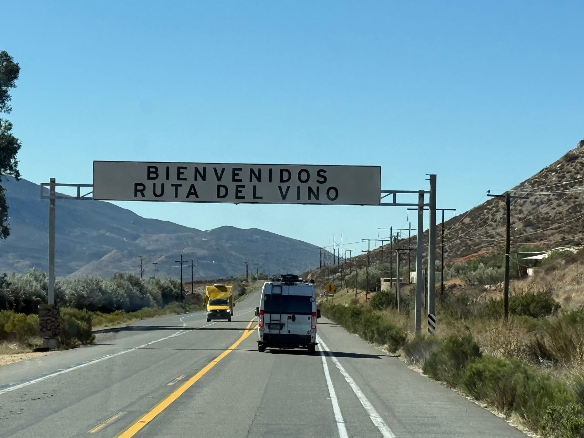 Once we left Tecate, we followed Highway 3 through the wine country. It was a beautiful drive, though sometimes challenging due to the size of the caravan and the road conditions. Some rules of the road in Mexico are quite different than in the USA. For example, if you want vehicles to pass, you drive partially on the right shoulder and use your left blinker to signal that other vehicles may pass you on the left.