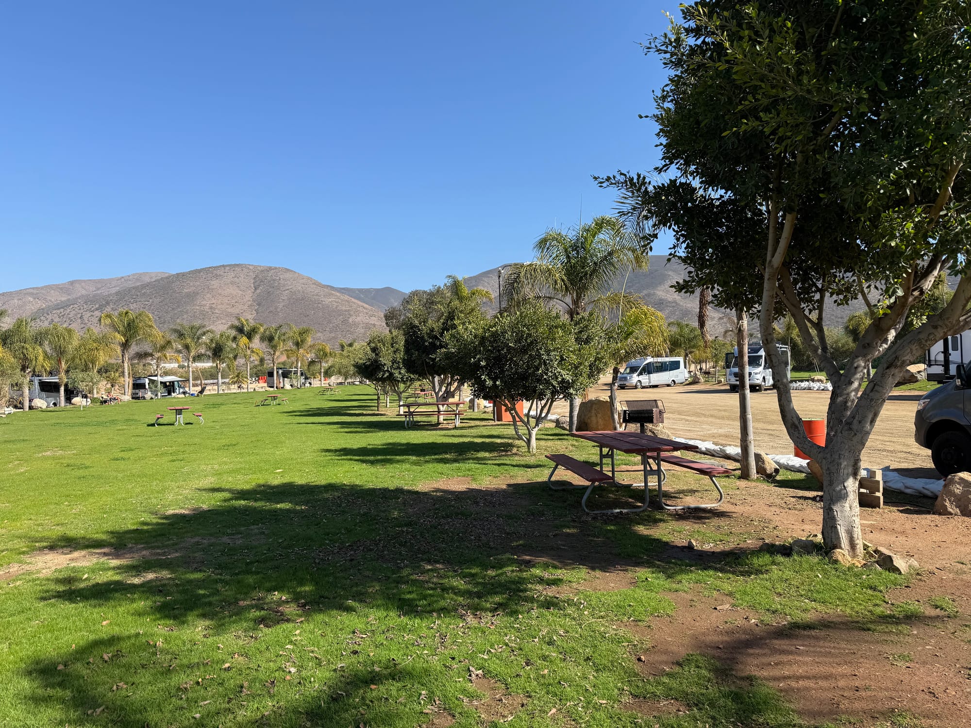 Today was a busy travel day. We started in Portrero, CA and ended in Ensenada, Baja California. The border crossing was easy: the border agent checked our papers and did a quick peek into our vehicle. It took a few minutes for all RVs in the caravan to pass through the border, especially the larger RVs near the back. We drove slowly through Tecate as we waited for the entire group; a police officer asked the wagon master why we were moving so slowly, and the officer escorted us through the town. Hard to imagine that happening in the USA!