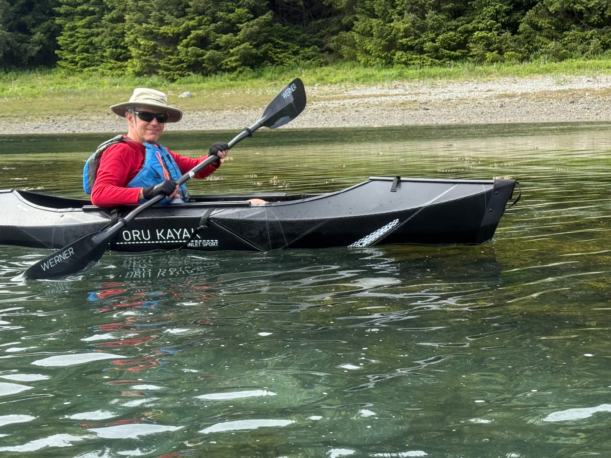 We got ourselves ready and at 3 PM, we launched the kayaks. The Beardsley Islands are beautiful and the water was calm. As we went out, we didn’t see any wildlife besides a few birds. After an hour we turned around. On the way back, Amy noticed a black bear colored rock. Then the rock started to move. She yelled out “bear”. At first, the bear just stayed there, continuing to eat. We gave it space and it decided to retreat into the forest. This trip through the islands was an amazing and we are glad that we were able to get there. We were the only people around. Very calm and serene.