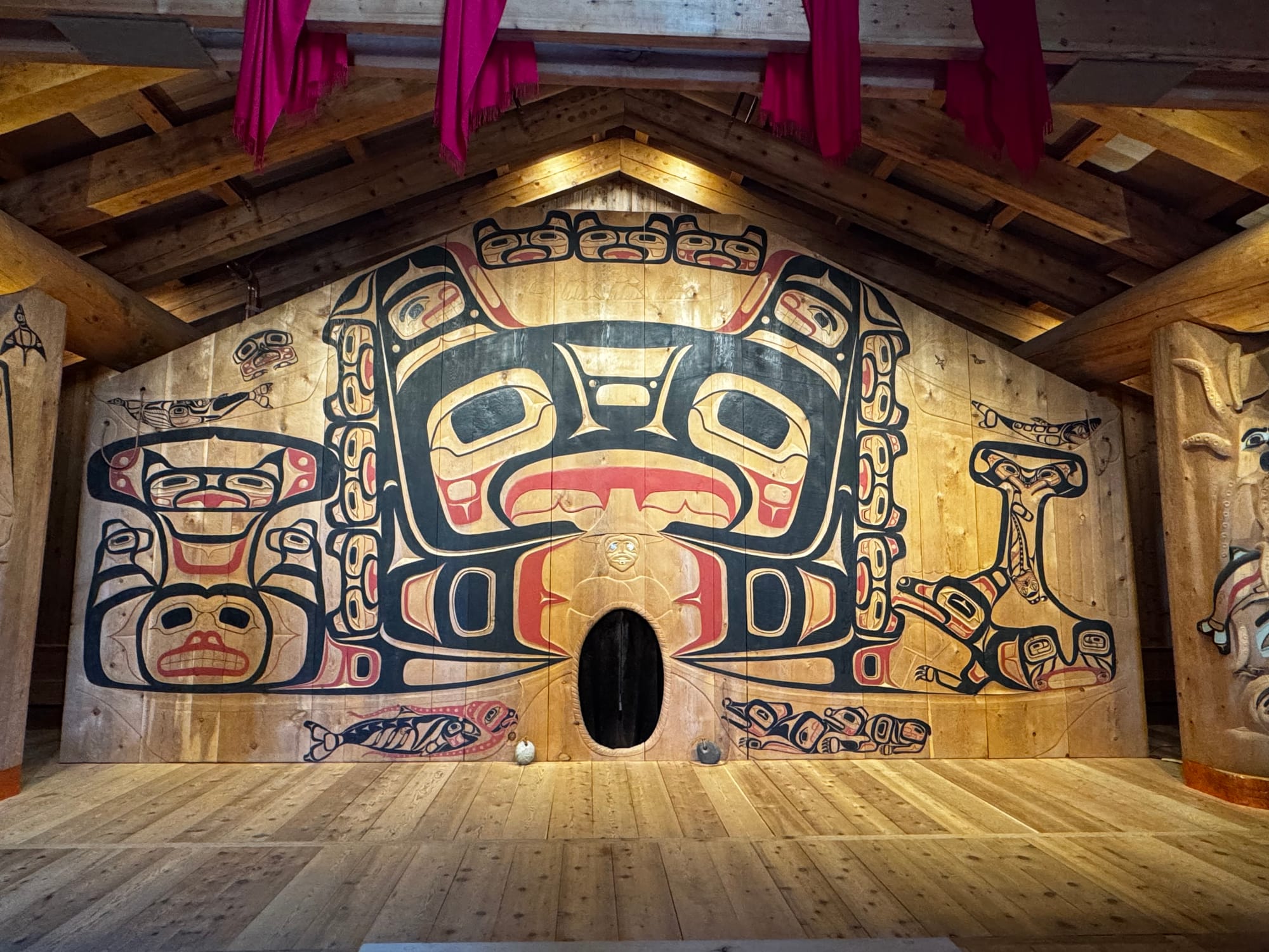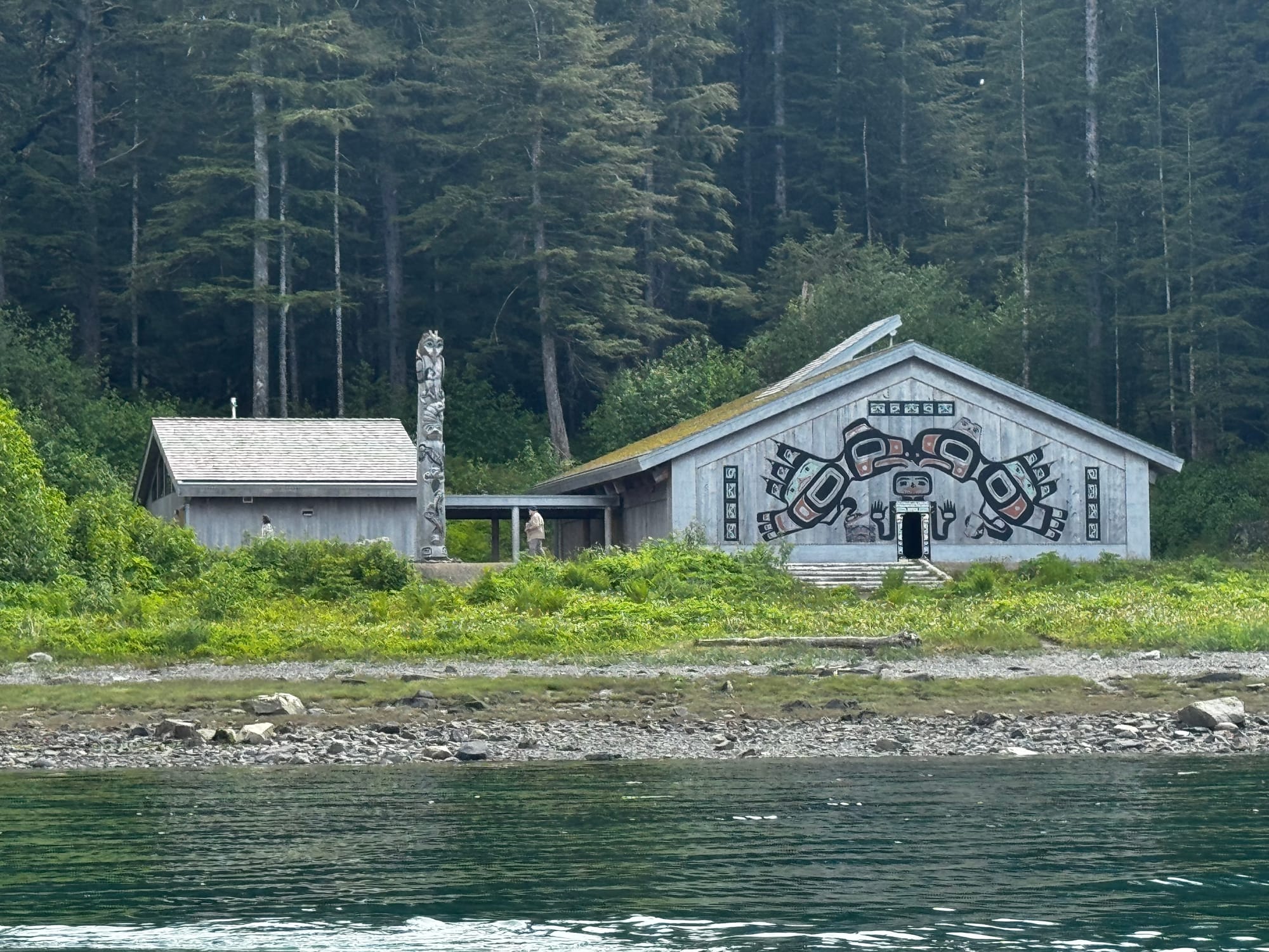 Next, we visited the Tlingit Tribal House, Xynaa Shuká Hit, which is currently used as a meeting house. It was built in 2016 and is being used by four clans. It is inside Glacier Bay National Park and is covered under an agreement between the National Park Service and the local Tlingit tribe.