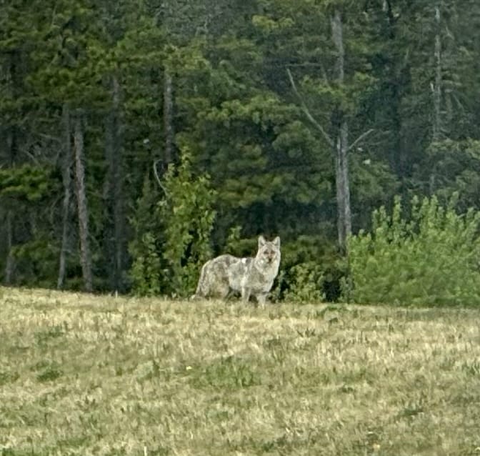 Not a lot of wildlife. We spotted one Coyote. There were lots of signs warning about moose and Black and Grizzly bears, but none appeared.