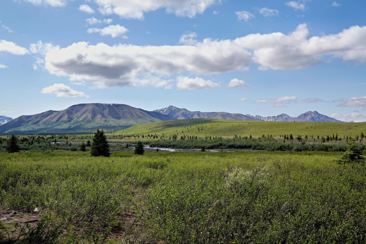 Afterwards, we returned to the Mountain Vista trail, which we visited when we drove in. An Arctic Squirrel hounded us as we ate our lunch. Greg tried a few times to scare it away, but it was undeterred. When we took the Mountain Vista trail, someone told us that we did not actually see Denali when we first visited because we were looking in the wrong direction! Denali is, infamously, hard to see due to the clouds.