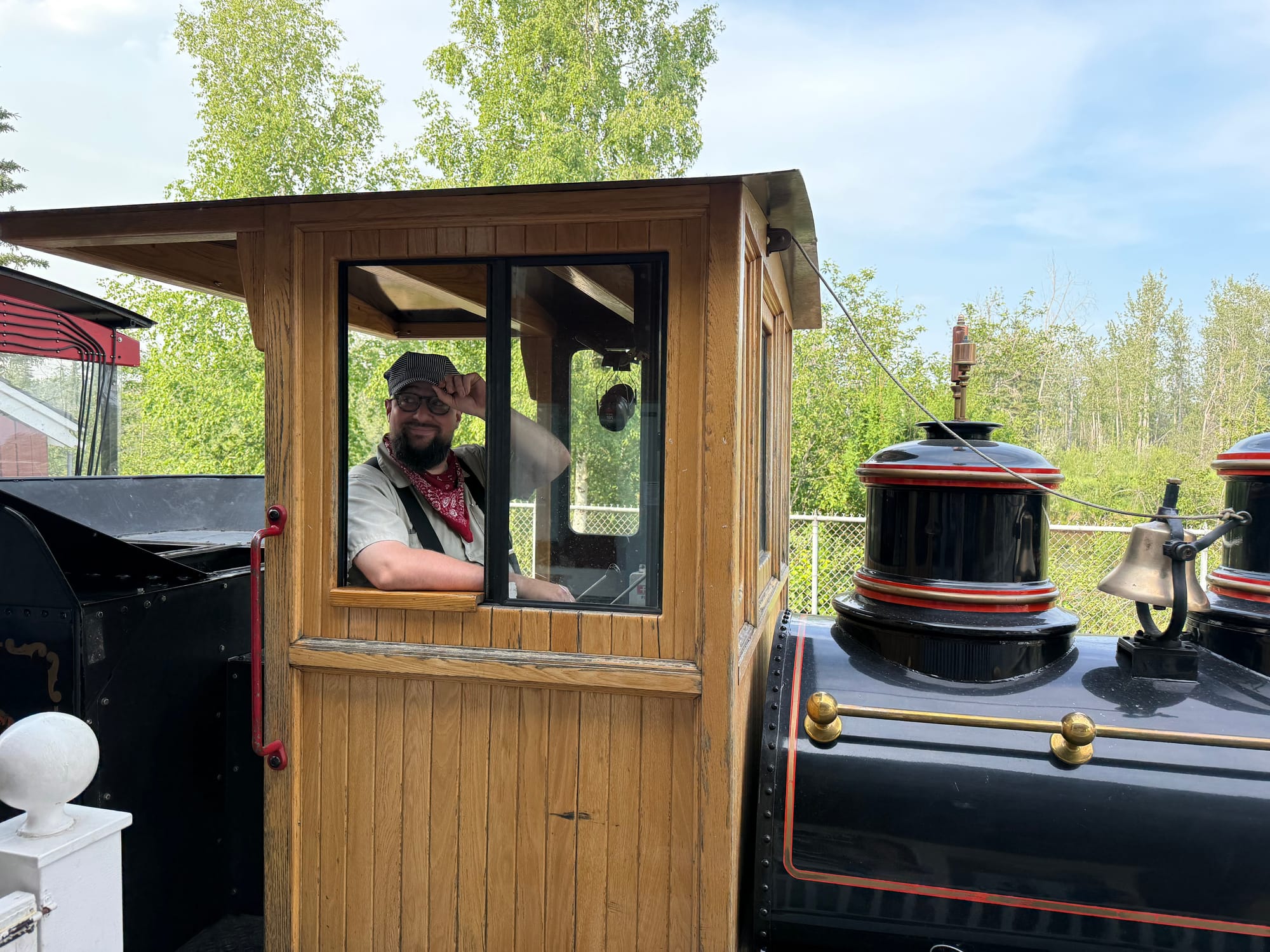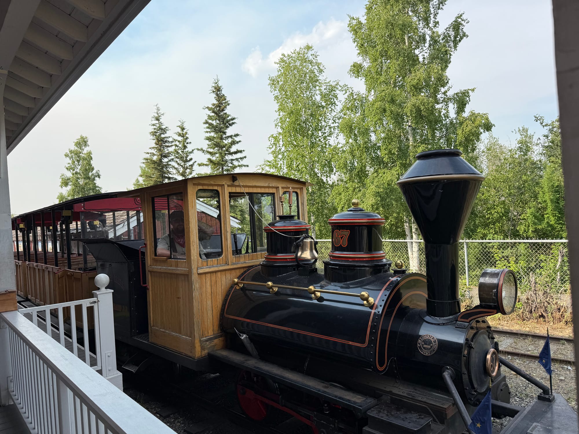 Instead, we stopped at Pioneer Village, a city park with a collection of log cabin buildings, a paddle boat, a train and a series of museums. The paddle boat had dioramas of towns from the outer reaches of Alaska. One building had a pioneer museum which was filled with a mish-mash of old items, from a dog sled to pelts to photos of the town founders. We walked by a house that had been owned by Judge Wickersham, the same judge whose house we visited in Juneau. The re-enactor asked if we knew about Judge Wickersham, and we said we said that we visited his house in Juneau! Apparently, the Judge founded Fairbanks and named it after his benefactor before moving to Juneau and becoming a representative in Washington for the territory of Alaska.