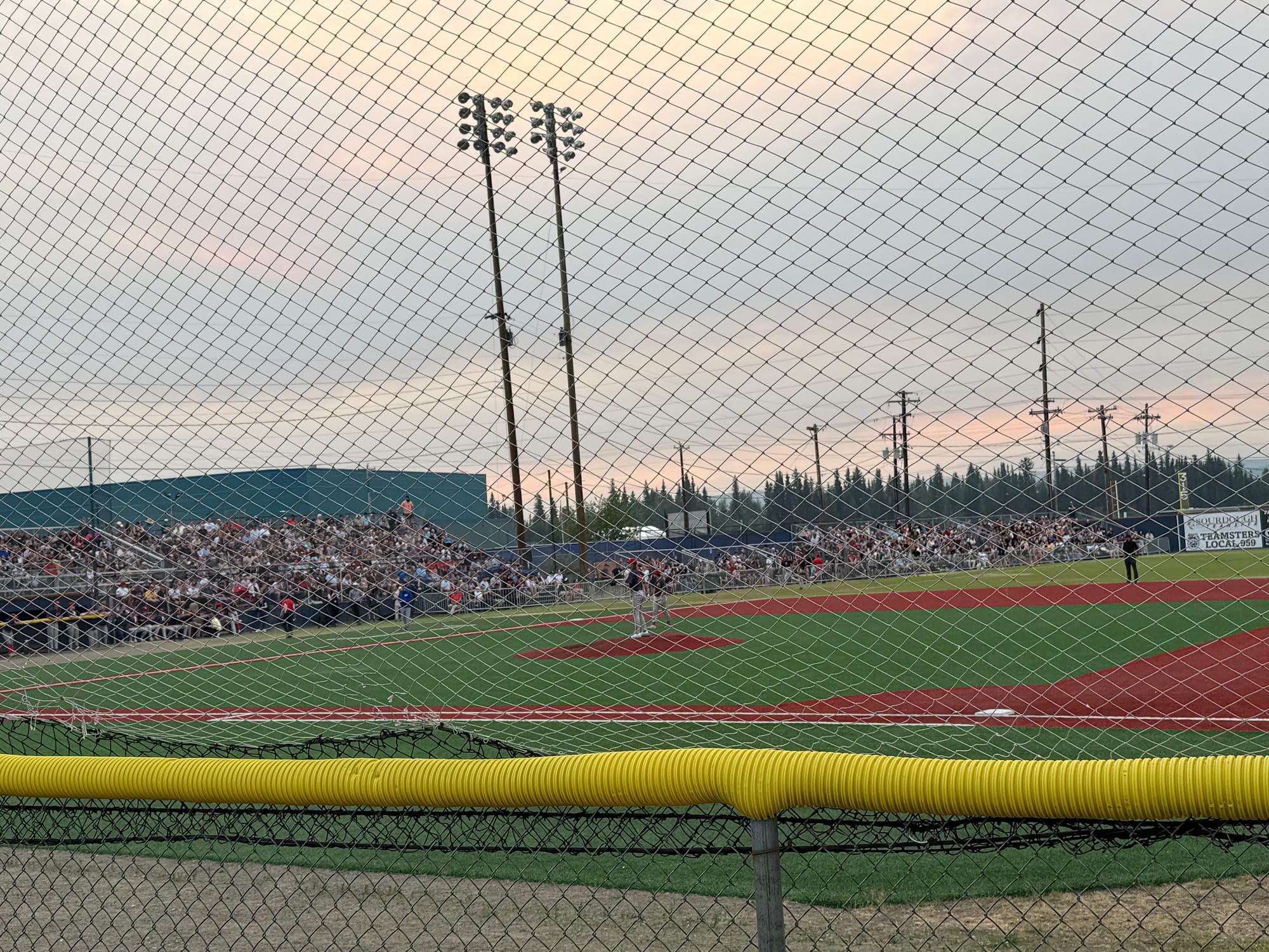 The gates opened for the Midnight Sun game 8PM with first pitch at 10PM. This is the 120th Midnight Sun game. It’s a tradition that started in 1906 with a bet between two Fairbanks bars. Now it is listed in Cooperstown as one of the top 10 must see games. The hometown Alaska Goldpanners have a 50-14 record in the Midnight Sun game and have only lost three games since 1992. Because we’ve been traveling so much, it’s Greg’s first baseball game of the season. Play ball!