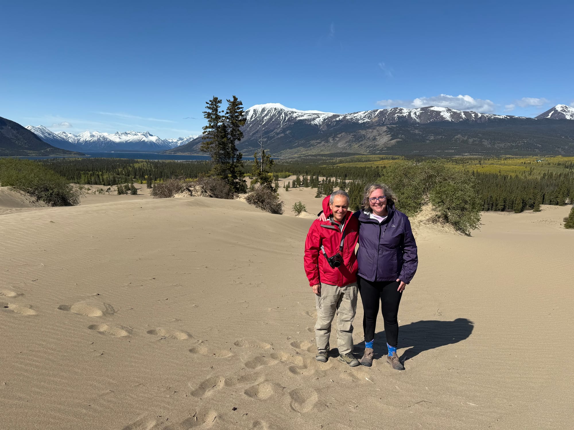 Next we stopped at the Carcross Desert. A desert in the Yukon?! Yes! This may be the driest place in Canada. It is also reported to be the smallest desert in North America. In the Carcross Desert, there is a sand dune. We climbed to the top, which had a stunning view. Oddly enough, the far side of the top hill was filled with trees. As we headed down, we saw an elementary school group that had a field trip to the dunes. I wish we had field trips like that.