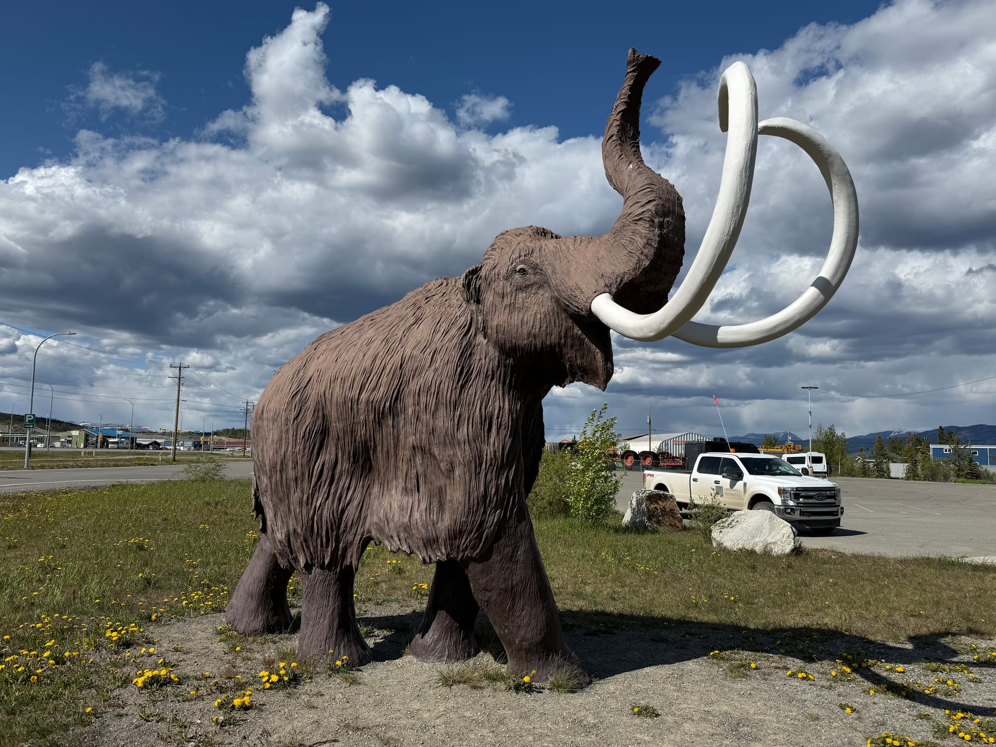 On our drive back to Whitehorse, a large moose dashed across the road. It moved too fast for us to get a photo. It was probably the largest moose we've seen so far. Finally, we visited the Yukon Beringia Museum, which covers the plant, animal and human migration across the land bridge from Asia to the Americas. Interesting information about glaciers and ancient animals and how the migration was affected by the freezing and melting of glaciers. The museum was quiet, so a docent gave us a private tour.