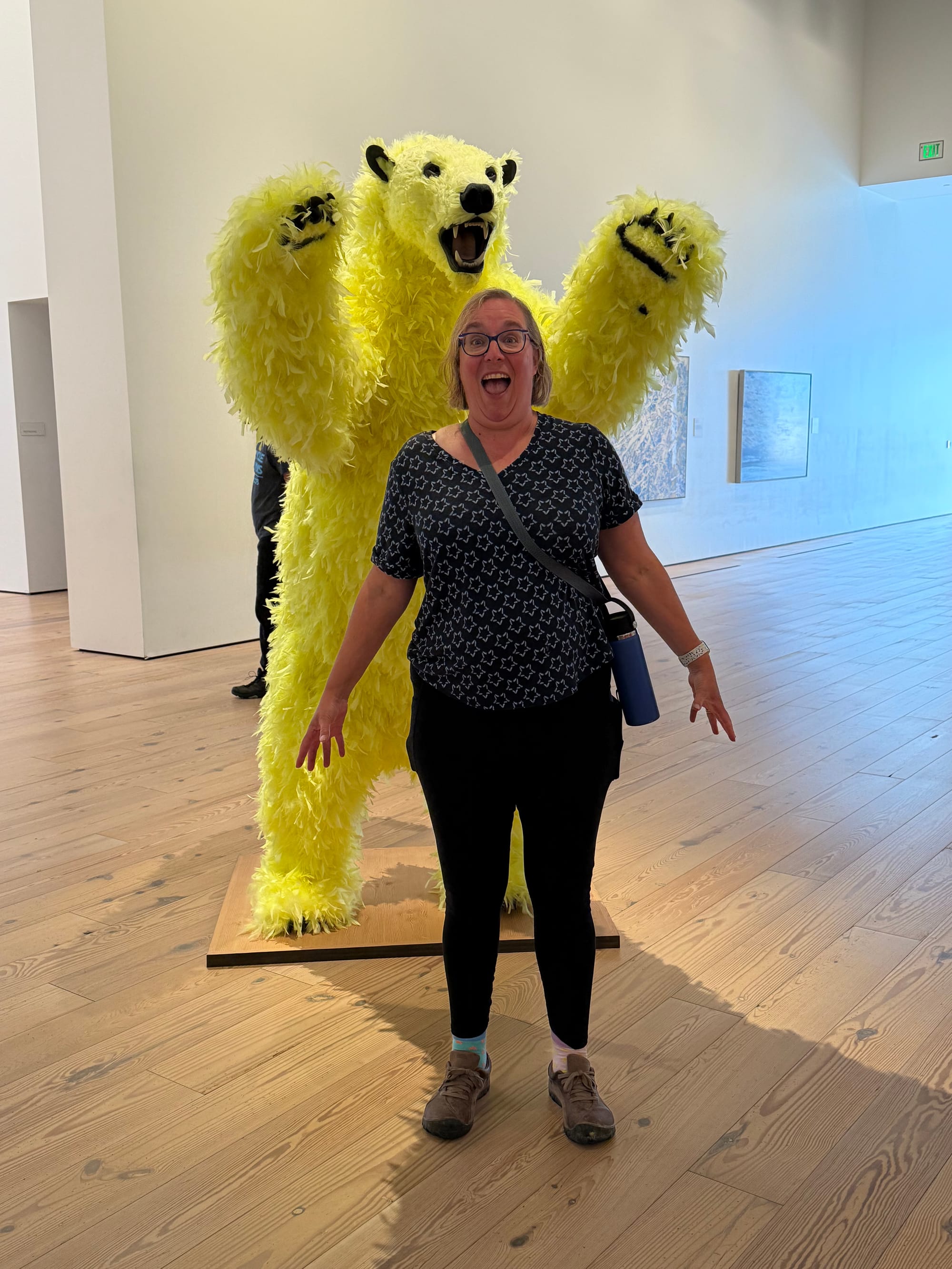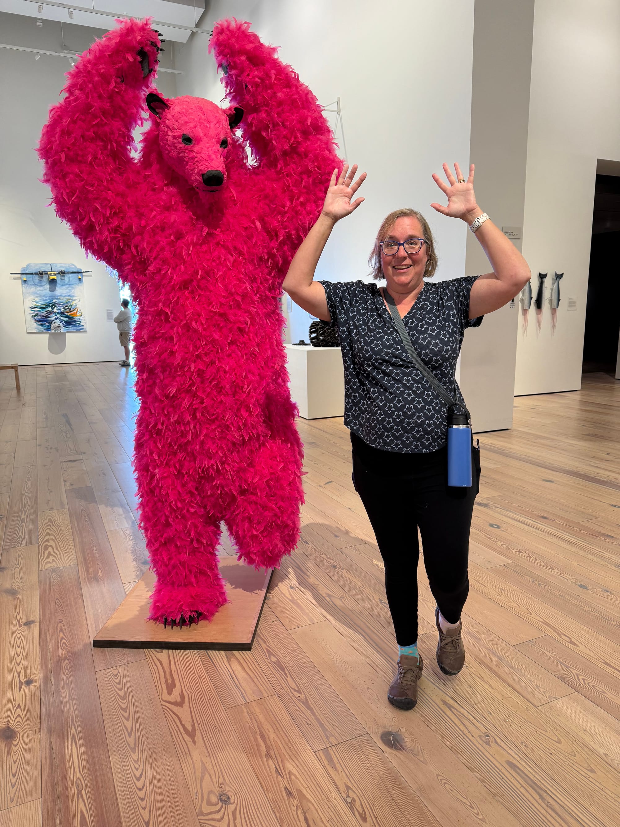 We had some time to explore Anchorage a bit. We visited the Anchorage Museum. The museum was listed as a must-see, and we can see why. It was mostly an art museum that specialized in Alaskan themed art. They an had a planetarium and a science lab. The art museum contained an exhibit from the Smithsonian on native life. They had exhibits on pictures of Denali and wild animals. Another exhibit was on Alaskan humor. Our favorite was an exhibit involving dogs. Ari keeps hoping that something like this exhibit will convince us that we need a dog.