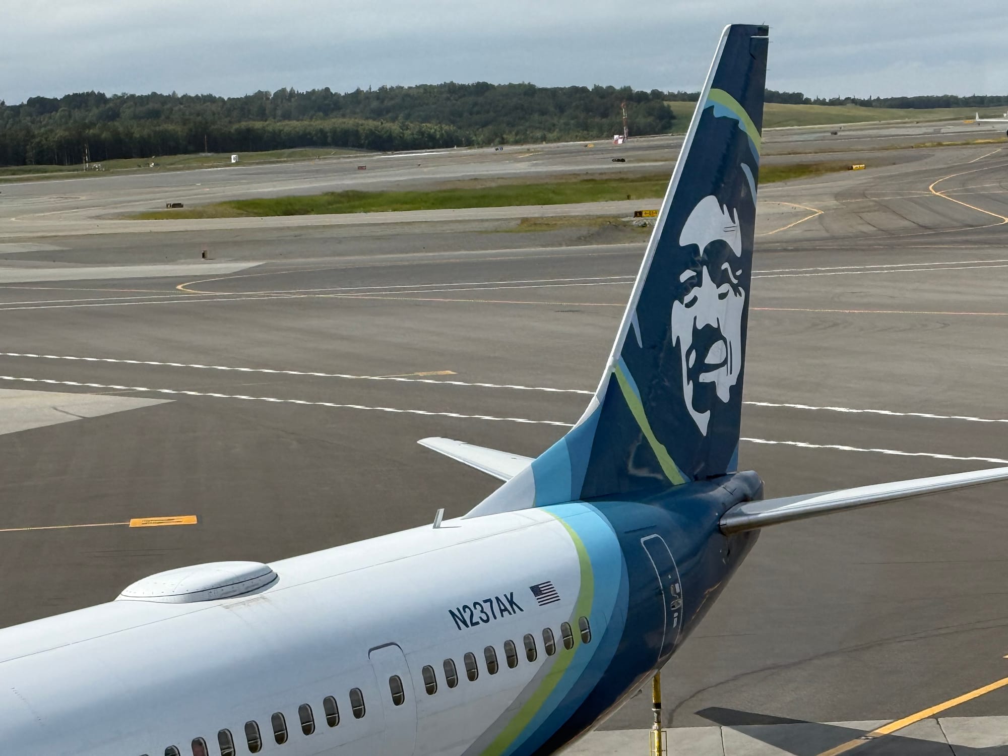 After the museum, we found a lovely nature trail along the water. The trail started in the flight path from the Anchorage airport. We had a nice walk with a nice view, and the airport noise wasn’t bad at all.