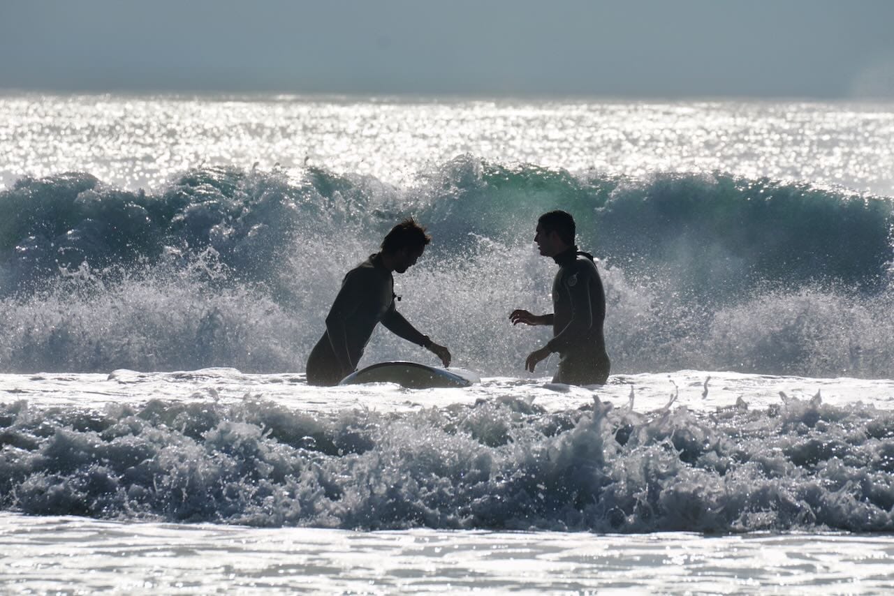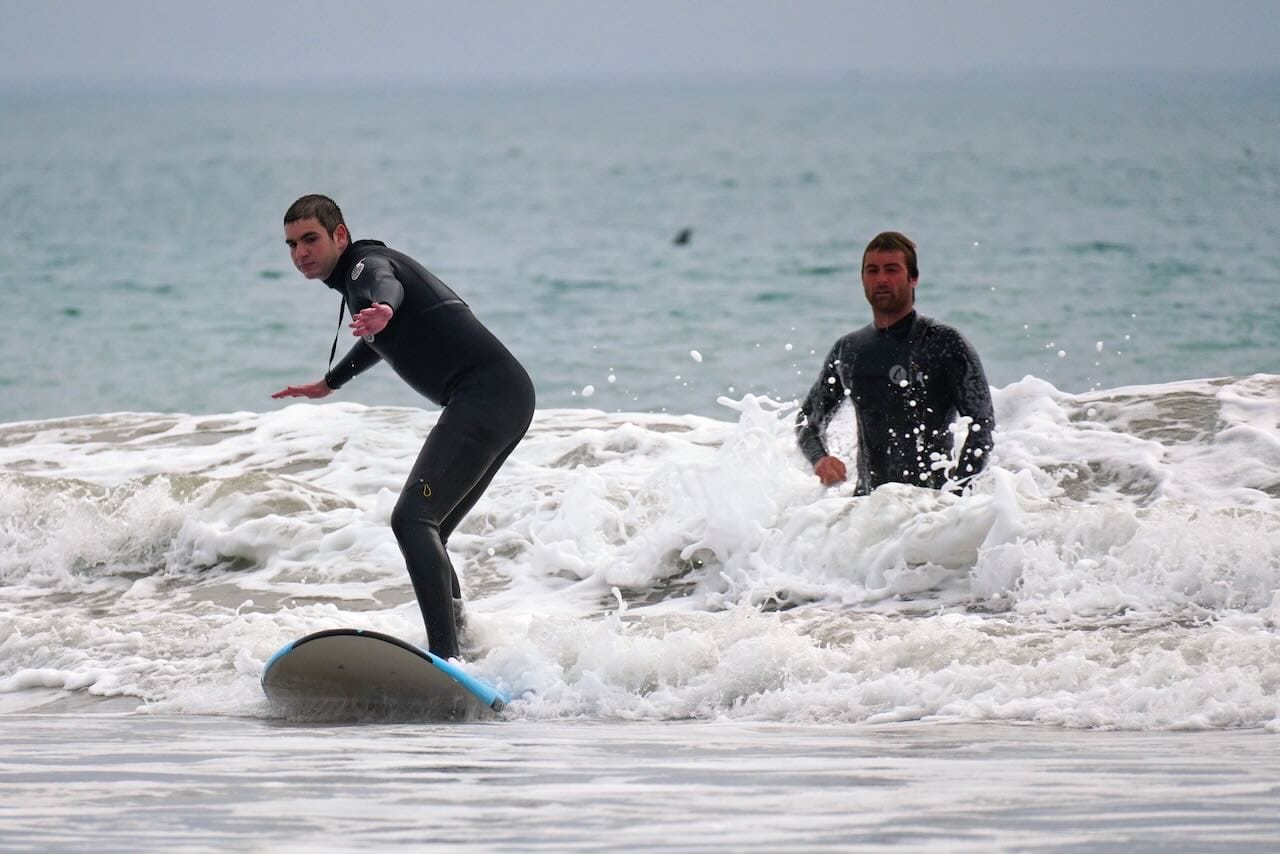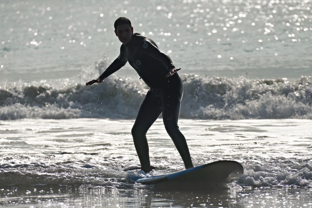 This afternoon Ari got his surfing lesson. The waves cooperated this time.