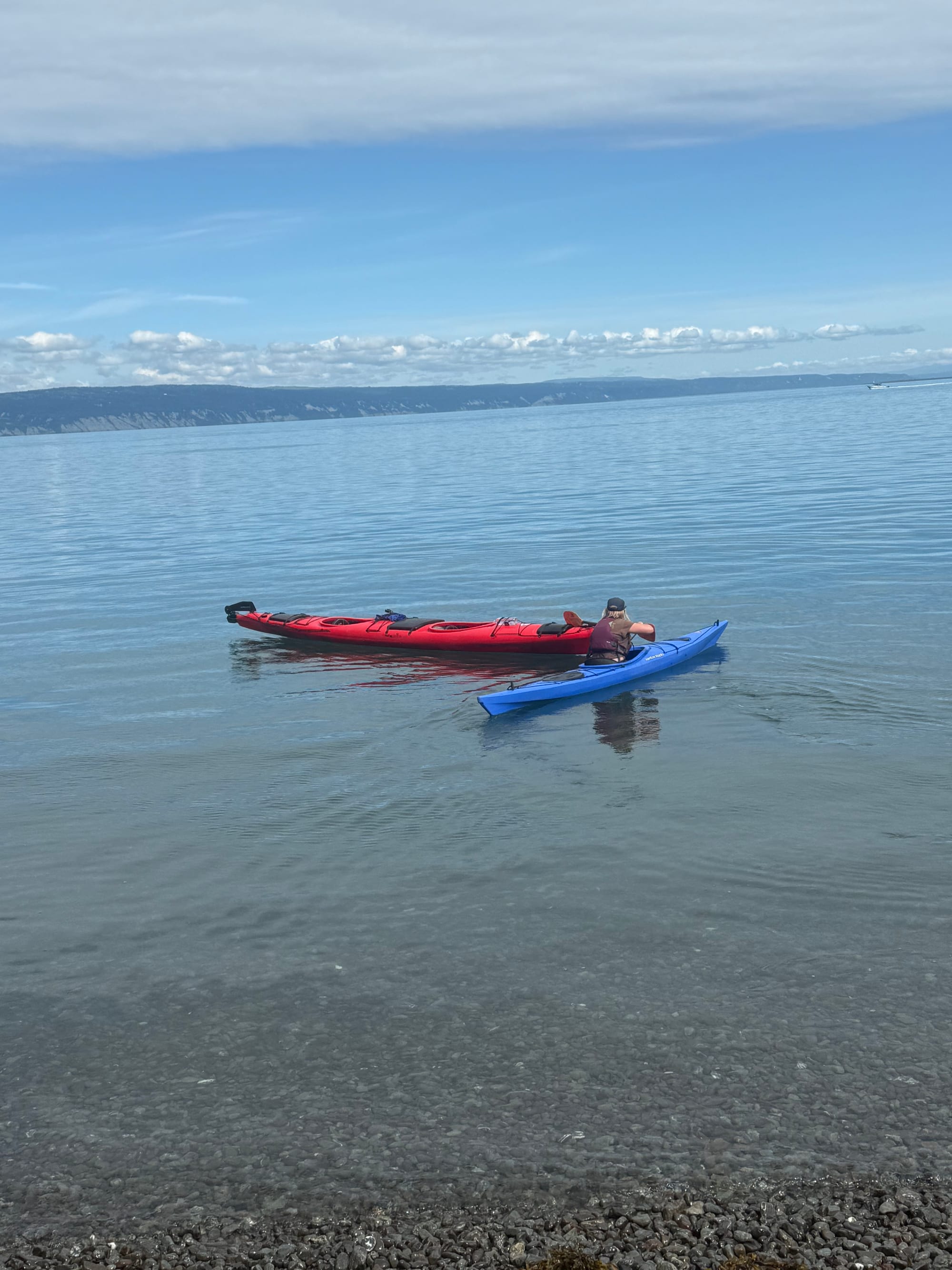We landed on a rocky beach and the rocks were so slippery that one of the kayaks slid into the water before we were ready!