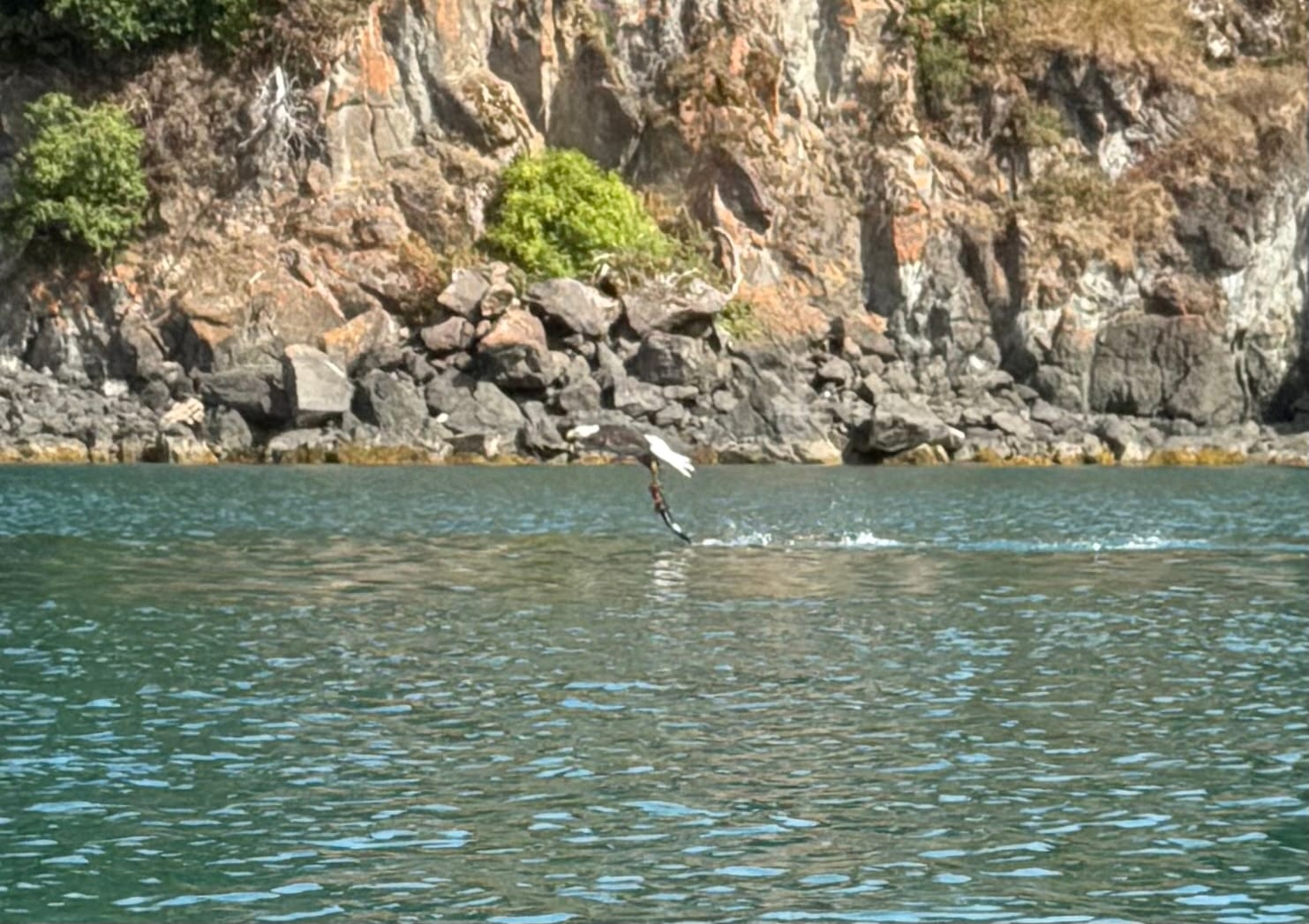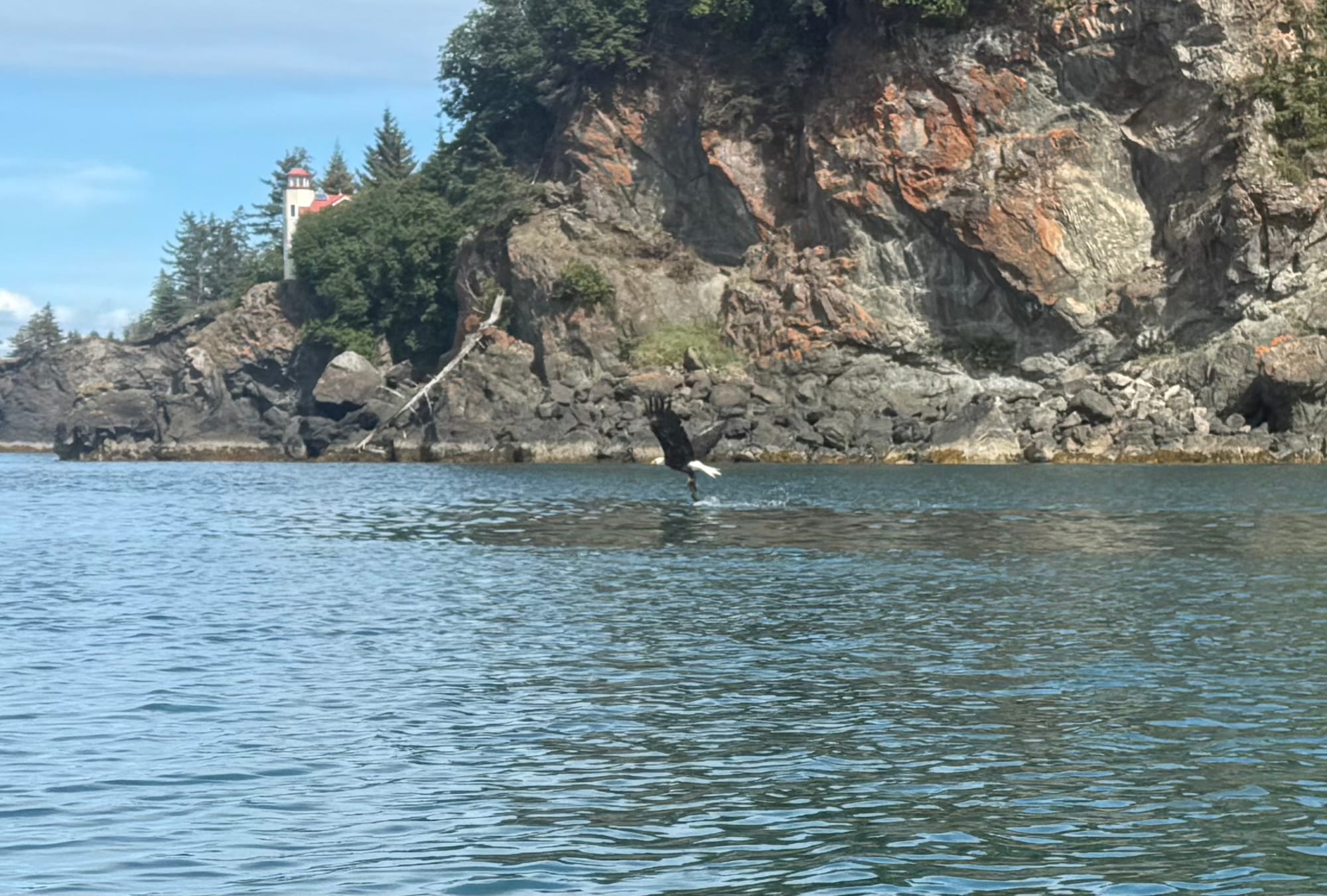 As we entered Halibut Cove, an eagle flew right over us and snatched a fish out of the water. It was an amazing moment and the highlight of our day. It was equally amazing that Amy was able to react quickly and photograph it on her iPhone.