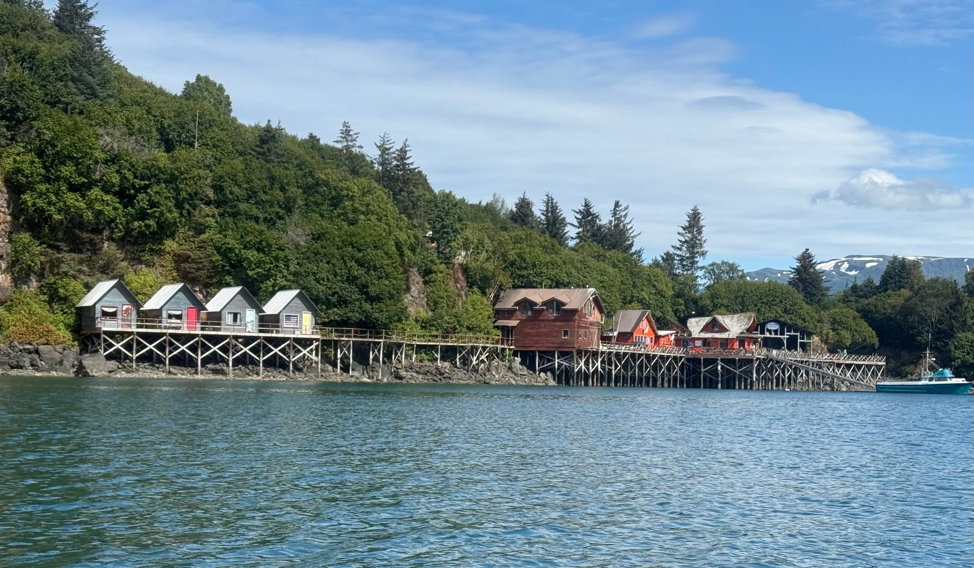 The kayaking yesterday at Homer Spit wasn’t great. We realized that we needed to take a boat to get to prettier and calmer places for kayaking. We decided to take a tour. They took us to Halibut Cove, an area settled in the early 1900s. There were houses on the water but the only access was by boat or sea plane.