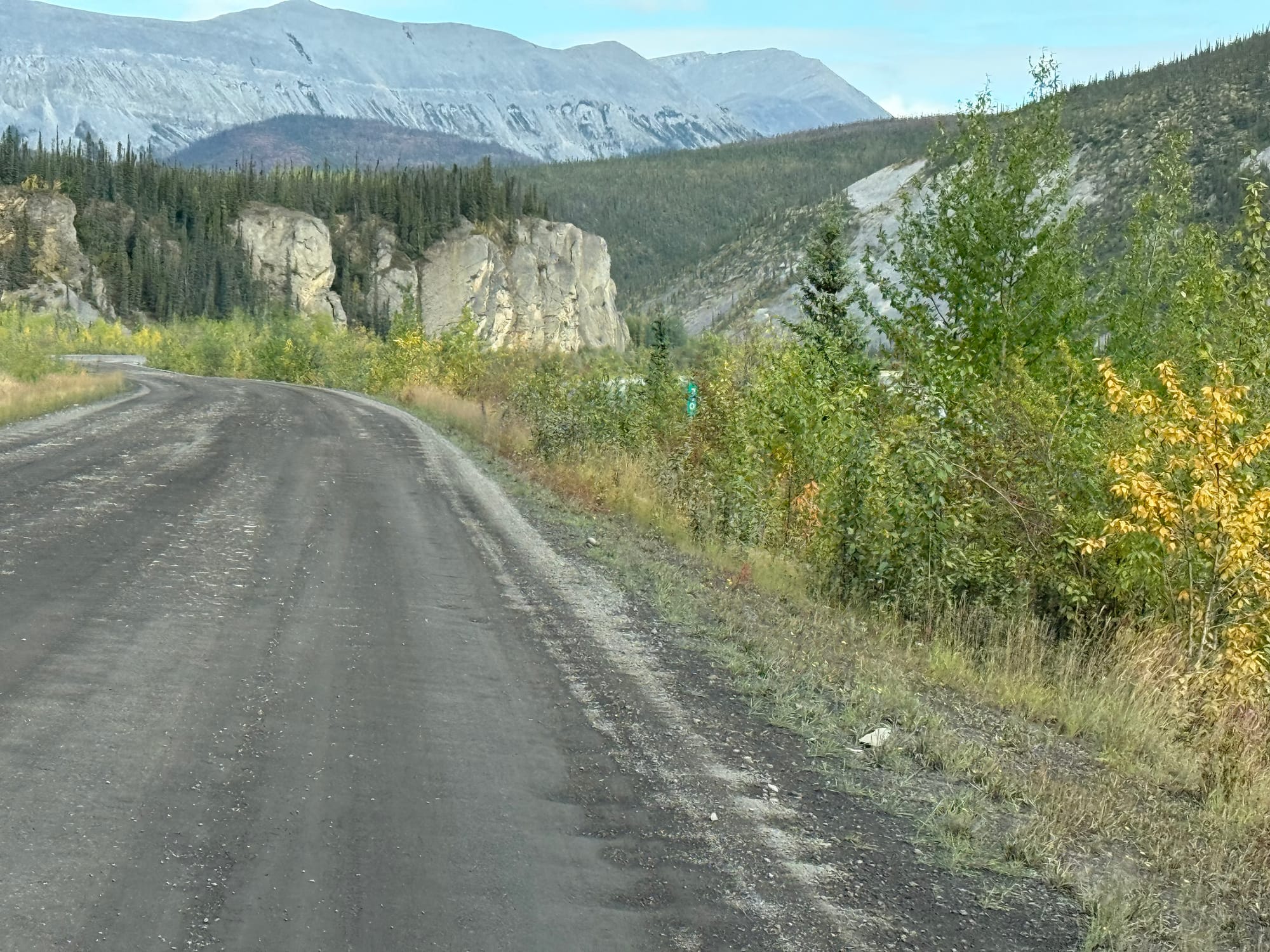 The Dempster was more beautiful than we expected. It is fall here already. The leaves are turning yellow. There is more vegetation than we expected. There is a mountain pass called Windy Pass. We weren’t sure if it was wind as in a coil, or wind as in a flow of air. It might have been both.