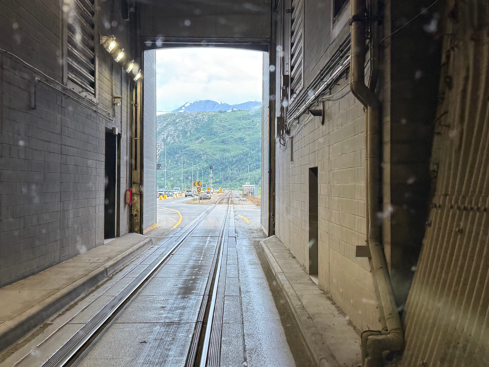 To drive to Whittier, you have to take the Portage Glacier Highway. You pass Portage Glacier (duh!). You also take the Anton Anderson Memorial Tunnel, a single-lane tunnel that is shared with cars and trains! It is the longest highway tunnel and the longest combined highway/railroad tunnel in North America. The tunnel maintains a schedule for eastbound vehicles, for westbound vehicles and for trains; we had to wait about 30 minutes for our time to drive through the tunnel.