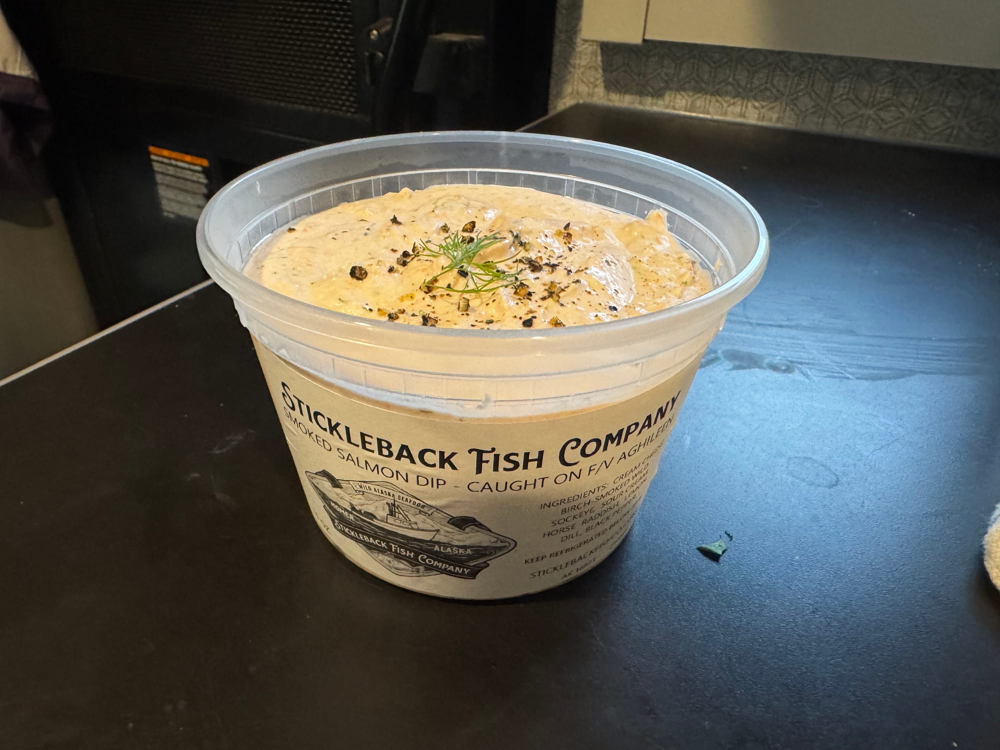 Before we left Homer, we had to return to Stickleback Fish Company for another tub of their smoked salmon dip. It is even better than the one we got at Jerry's Meats and Seafoods in Juneau. Greg waited a few minutes for Stickleback to open; when they did, he asked to buy "another container of salmon crack". It's very good and extremely addictive.