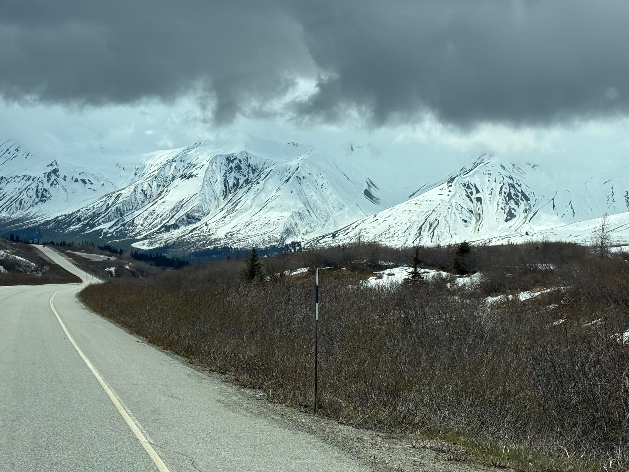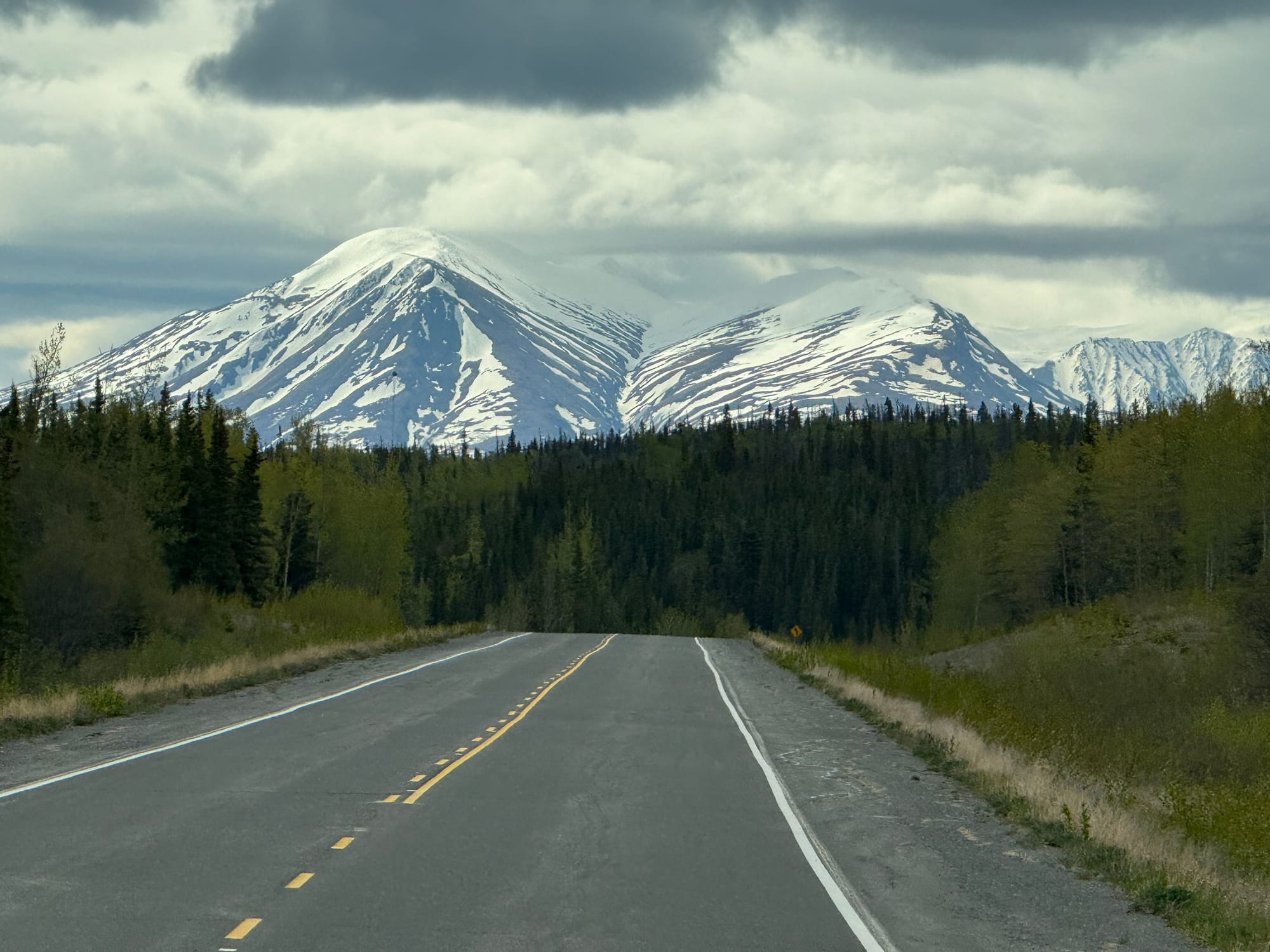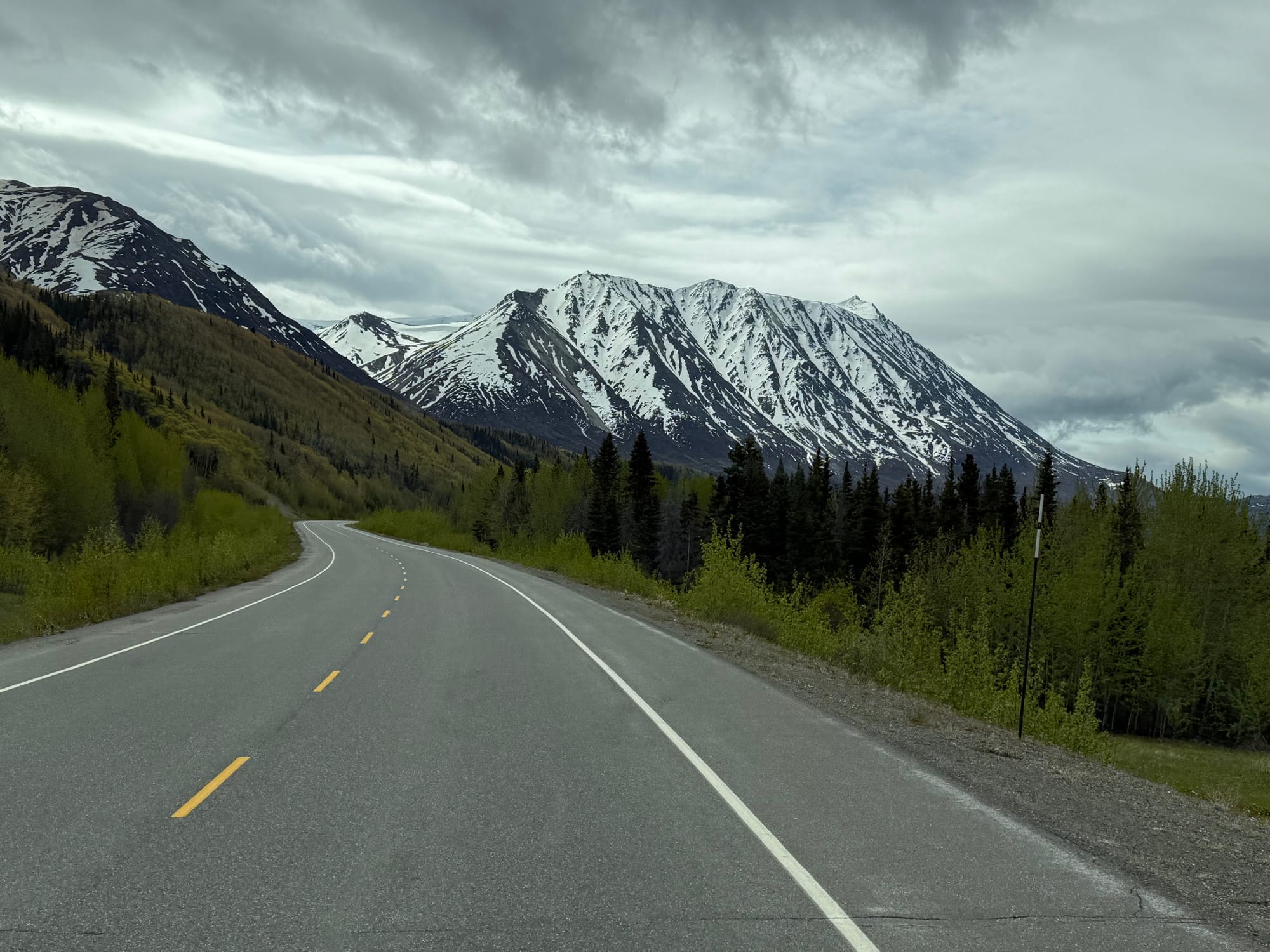 The drive from Haines Junction, YT to the US border passes by the edge of Kluane National Park, the Canadian side of Wrangell-St. Elias National Park in the US. We won’t visit Wrangell-St. Elias until our return trip, but WOW. The mountains in the park are imposing and impressive. The photos that we took didn’t do them justice. The weather was overcast, so many of the peaks were covered in clouds and you can’t appreciate the scale from the photos. We are excited to explore this park when we return.