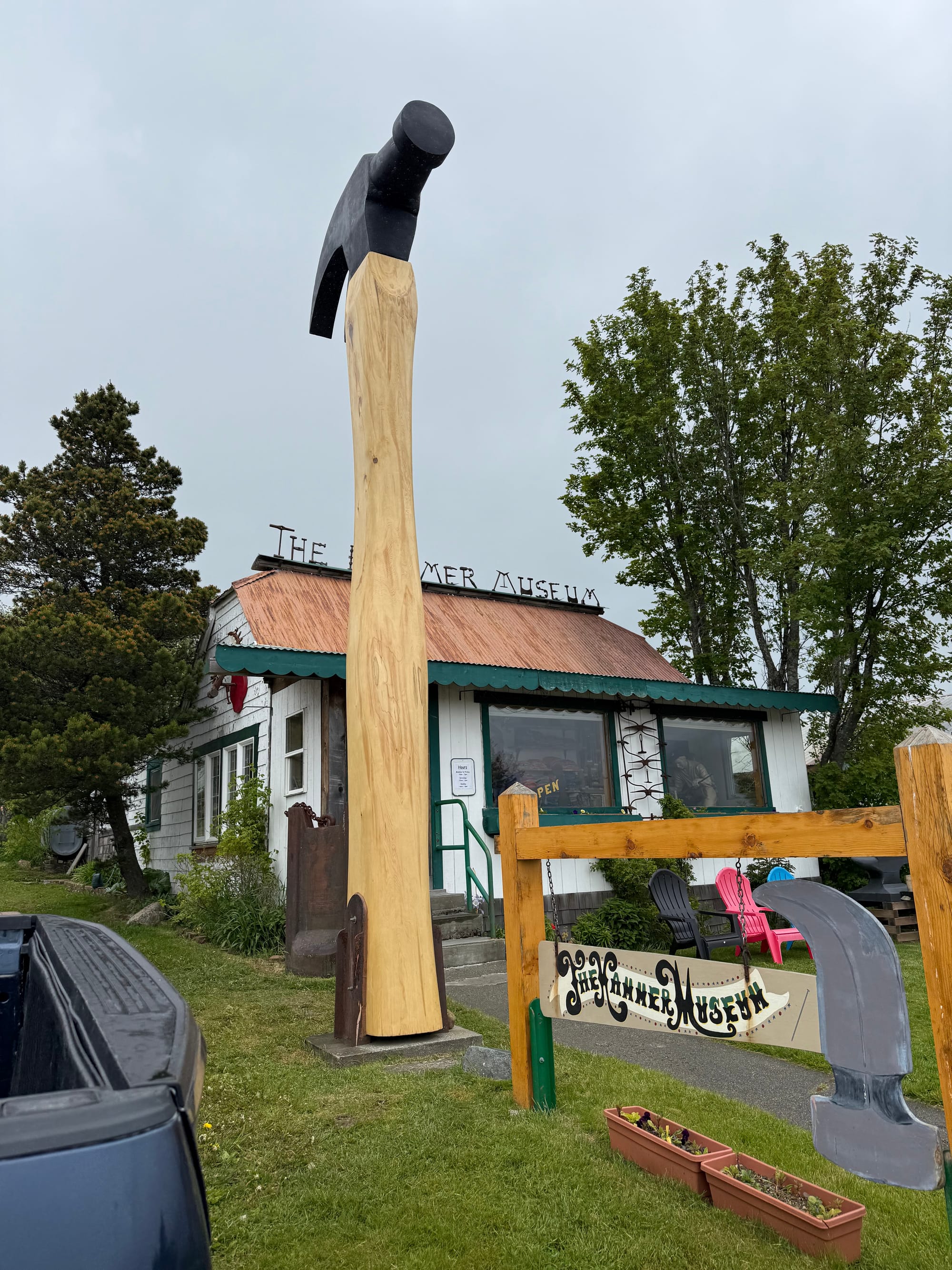 We continued on and crossed into Alaska. We arrived in Haines, a small town along the water. It is only 16 miles to Skagway as the eagle flies, but there is no direct road connecting them. We spent the afternoon exploring the town. We had to check out the hammer museum. It started as a personal collection and has grown to over 2500 hammers. They told us there is only one other hammer museum in the world, in Lithuania.